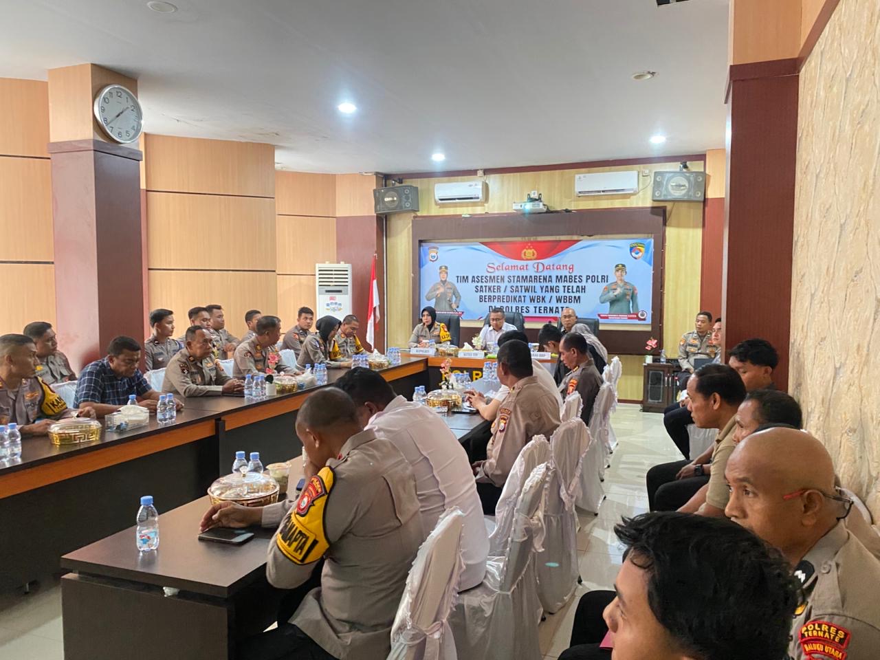 Ternate – Polres Ternate menerima kunjungan Tim Assessment Stamarena Mabes Polri Satker/Satwil Berpredikat WBK/WBBM yang bertempat di Ruang TMCC Polres Ternate, Kelurahan Takoma, Kecamatan Ternate Tengah, pada Selasa, (18/11/25).