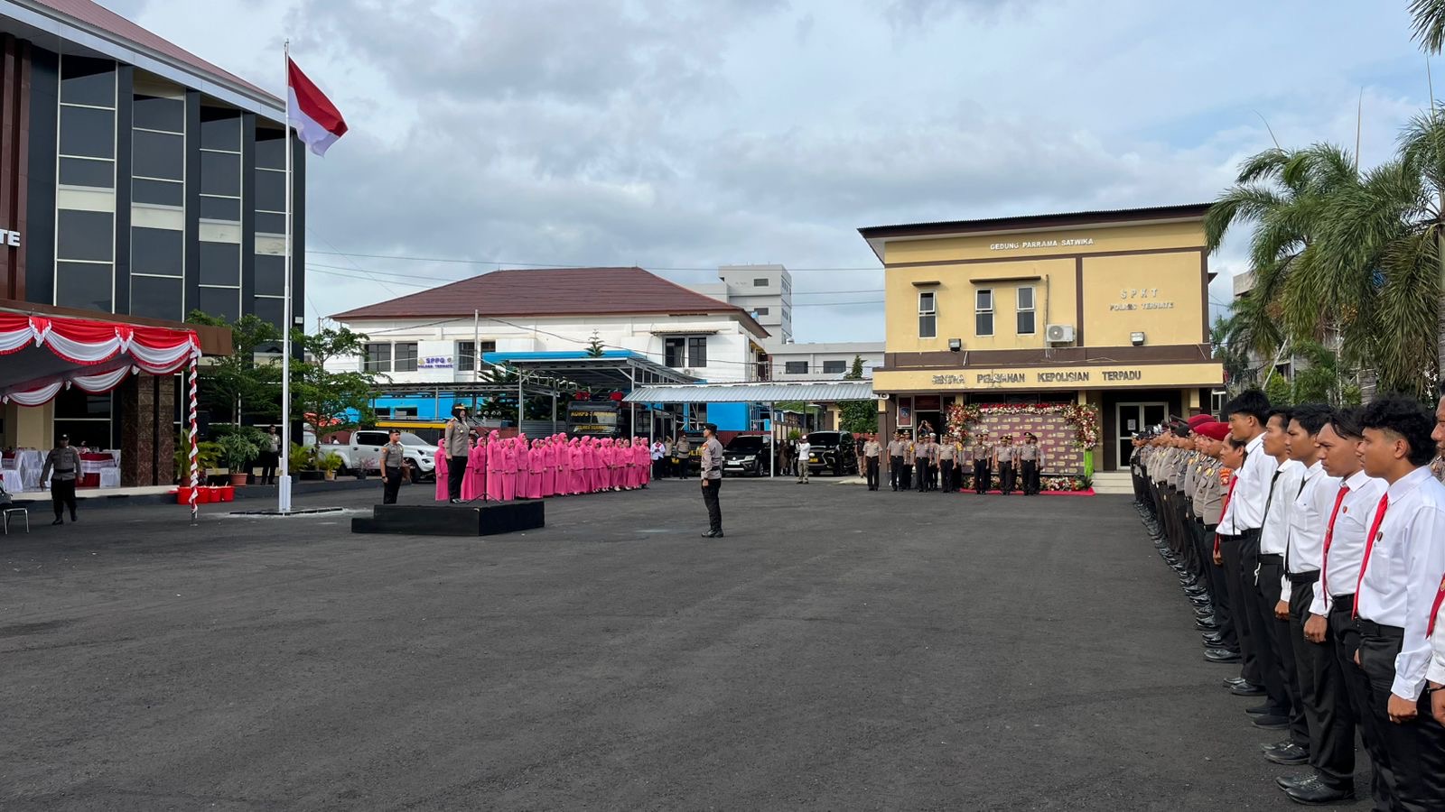 Upacara tersebut dipimpin langsung oleh Kapolres Ternate, AKBP Anita Ranta Yulianto, S.I.K., M.H., selaku Inspektur Upacara, serta dihadiri oleh Pejabat Utama Polres Ternate, para perwira, dan seluruh personel peserta upacara.