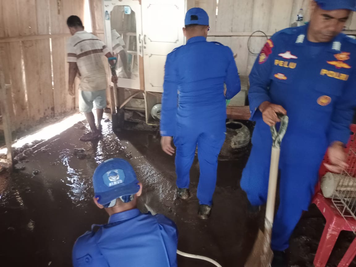 Selain membersihkan lingkungan sekitar, personel kepolisian juga membantu warga membersihkan rumah-rumah yang terdampak, agar dapat segera kembali dihuni dan aktivitas masyarakat dapat berjalan normal.