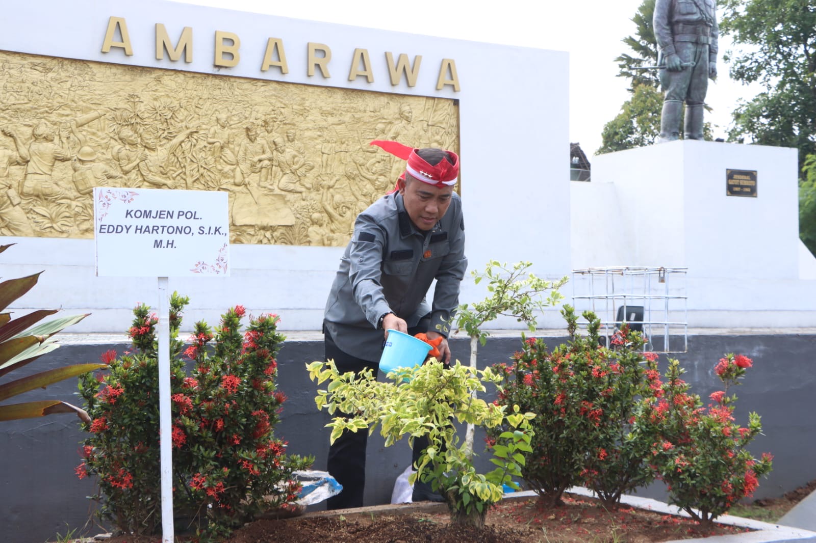 Semarang | Rangkaian kegiatan bakti sosial Alumni Akademi Kepolisian (Akpol) angkatan 1990 Batalyon Dhira Brata ditutup dengan penanaman puluhan bibit pohon dan tanaman hias di kawasan Monumen Palagan Ambarawa, Kabupaten Semarang, Sabtu siang (23/8/2025).