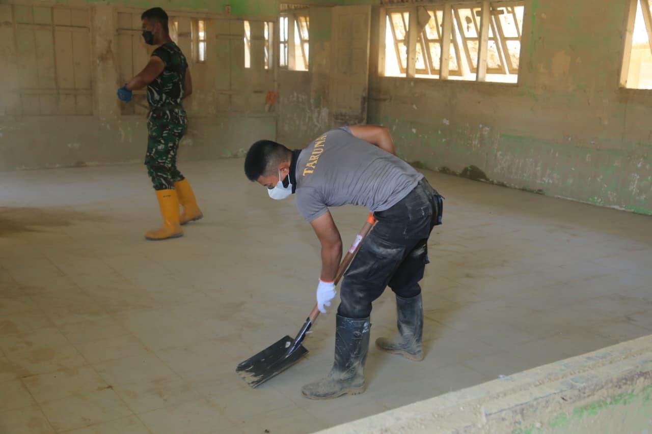 Taruna Akpol, Sultan Rekha Alfarabbi Firdaus, menjelaskan bahwa kondisi lumpur di dalam ruangan sekolah masih cukup tebal sehingga membutuhkan penanganan serius.