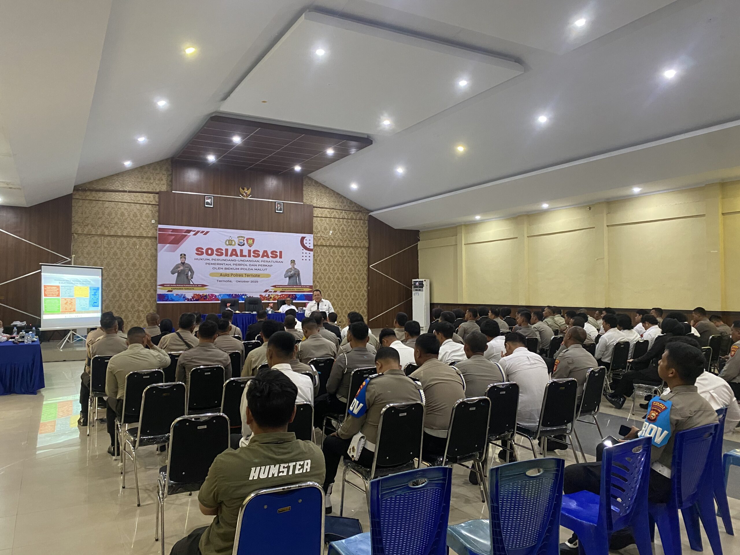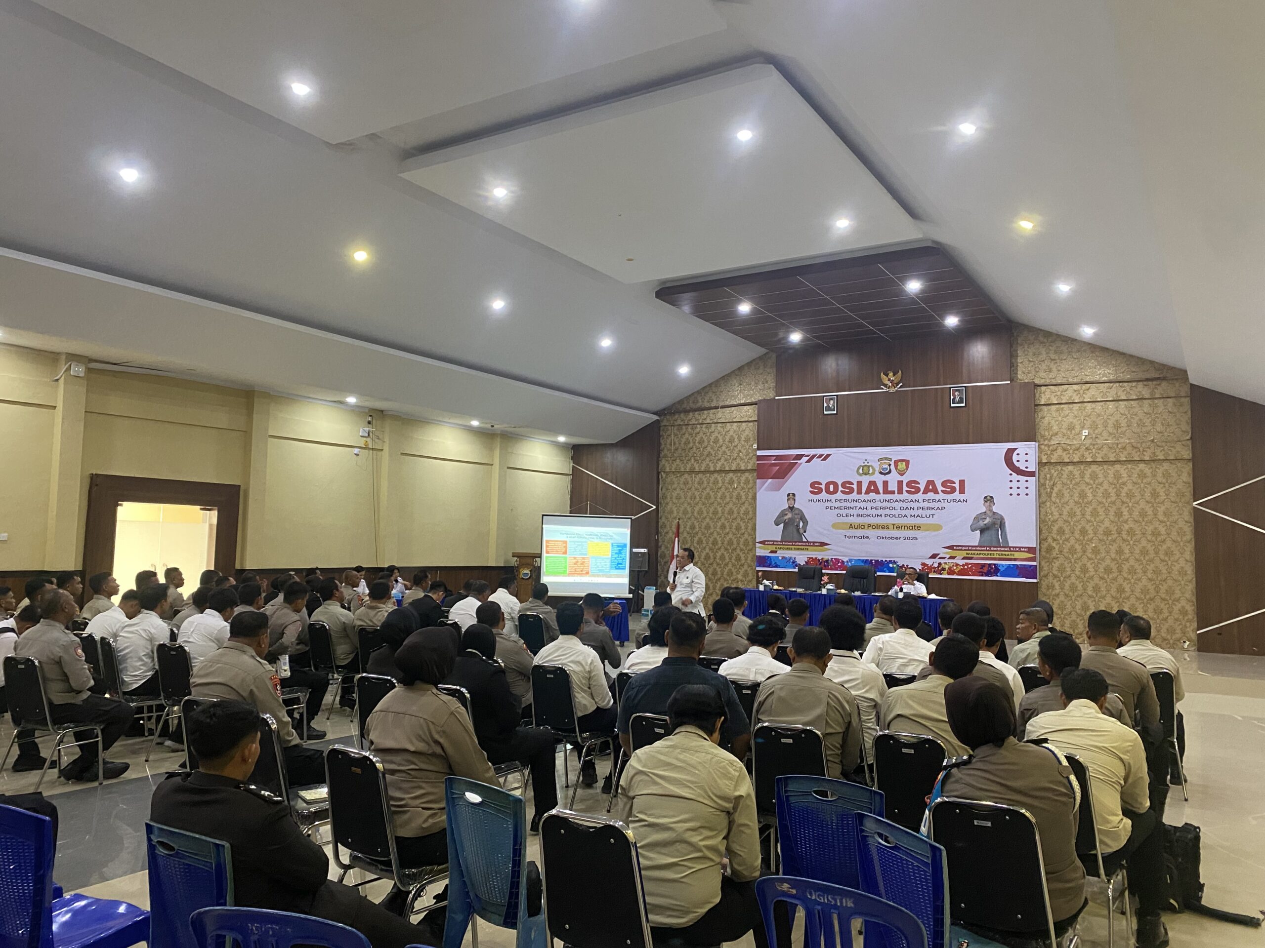 Ternate – Dalam rangka meningkatkan pemahaman dan profesionalisme personel di bidang hukum dan peraturan internal Polri, Bidang Hukum Polda Maluku Utara melaksanakan kegiatan Sosialisasi Hukum, Perundang-undangan, Perpol dan Perkap kepada personel Polres Ternate, bertempat di Aula Polres Ternate, Kelurahan Takoma, Kecamatan Ternate Tengah, pada Selasa (28/10/25).