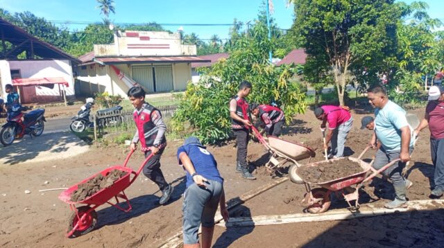 Personel Polres Halmahera Barat (Halbar) menggelar bakti sosial berupa pembersihan sisa-sisa lumpur pascabanjir di Desa Baca selengkapnya