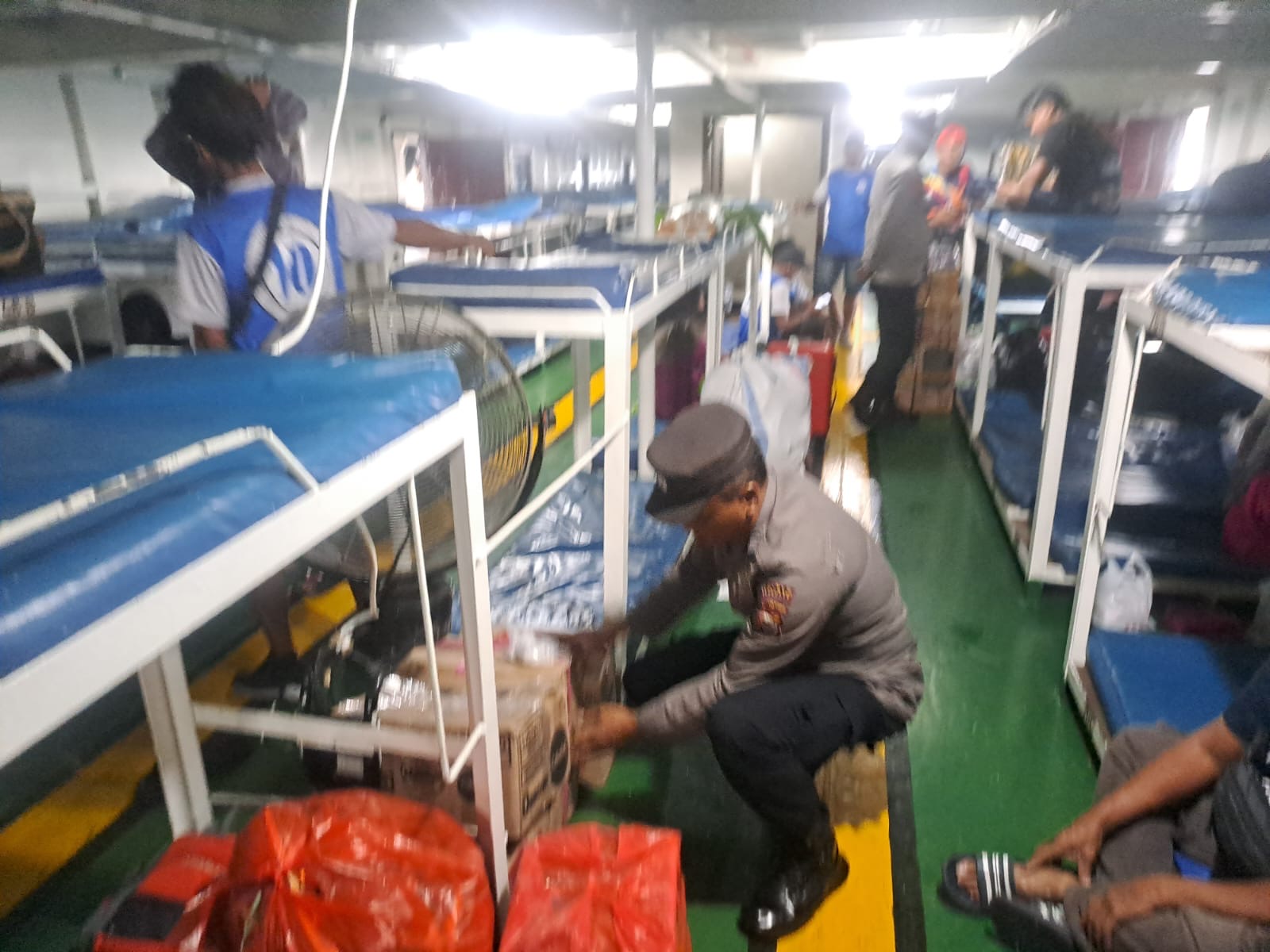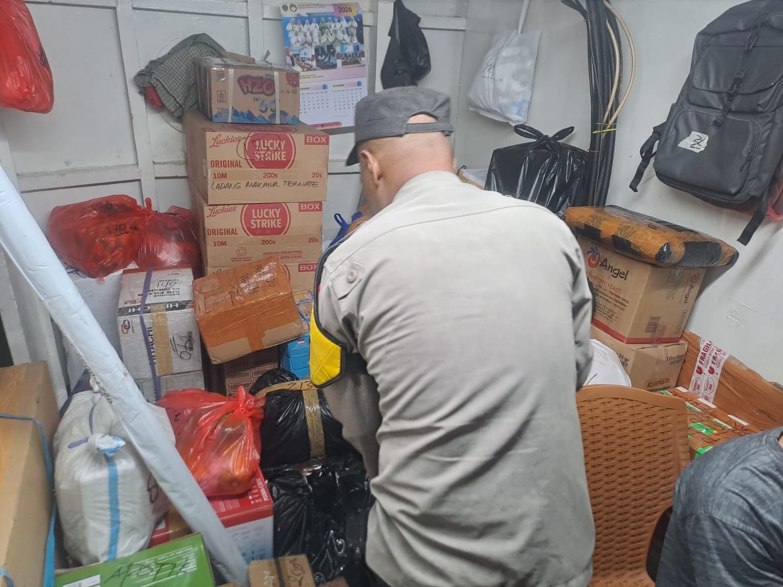 Ternate – Dalam rangka menjaga situasi kamtibmas yang aman dan kondusif selama bulan suci Ramadan, Personel Polsek Kawasan Pelabuhan Ahmad Yani melaksanakan razia minuman beralkohol ilegal dan barang ilegal lainnya diatas Kapal yang tiba dari Pelabuhan Manado, di Pelabuhan Ahmad Yani Ternate, Kelurahan Kota Baru, Kecamatan Ternate Tengah, sebagai bagian dari upaya preventif kepolisian dalam menekan peredaran miras di wilayah hukum Polres Ternate, Jumat (20/02/26).