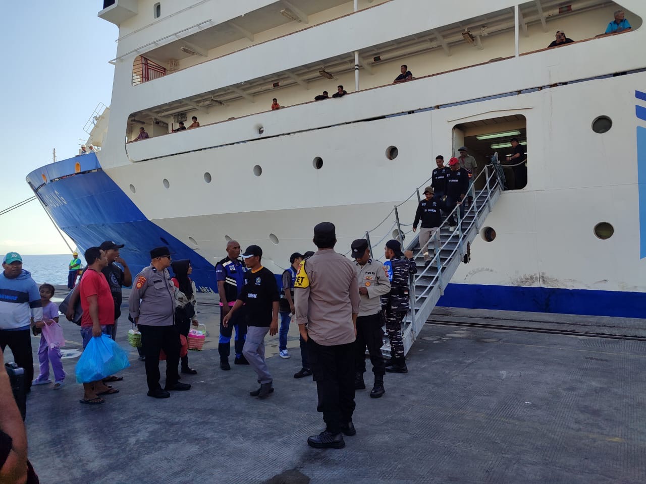 Personel yang bertugas mengarahkan arus keluar masuk penumpang, melakukan pemantauan di area dermaga, serta mengantisipasi potensi tindak kejahatan dan gangguan kamtibmas lainnya.