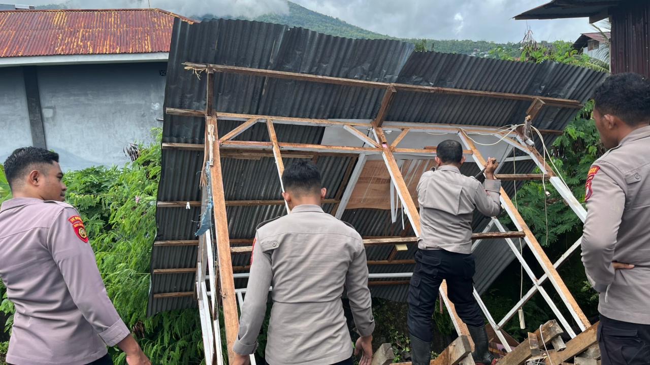 “Personel Satuan Samapta Polres Ternate diterjunkan untuk membantu membersihkan rumah warga yang terdampak banjir dan longsor, guna meringankan beban masyarakat serta mempercepat pemulihan kondisi lingkungan,” jelas Ipda Kasi Humas.