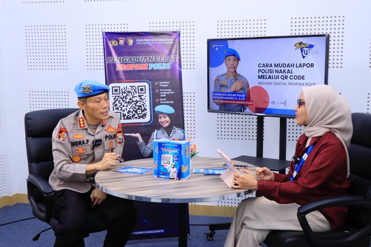 Inovasi ini menjadi topik utama dalam kegiatan podcast yang digelar di Ruang Podcast Tribun Ternate, Kegiatan tersebut turut dihadiri oleh Kabid Propam Polda Maluku Utara, KOMBES POL Indrapramana H., S.I.K, bersama jajaran serta tim dari Tribun Ternate.