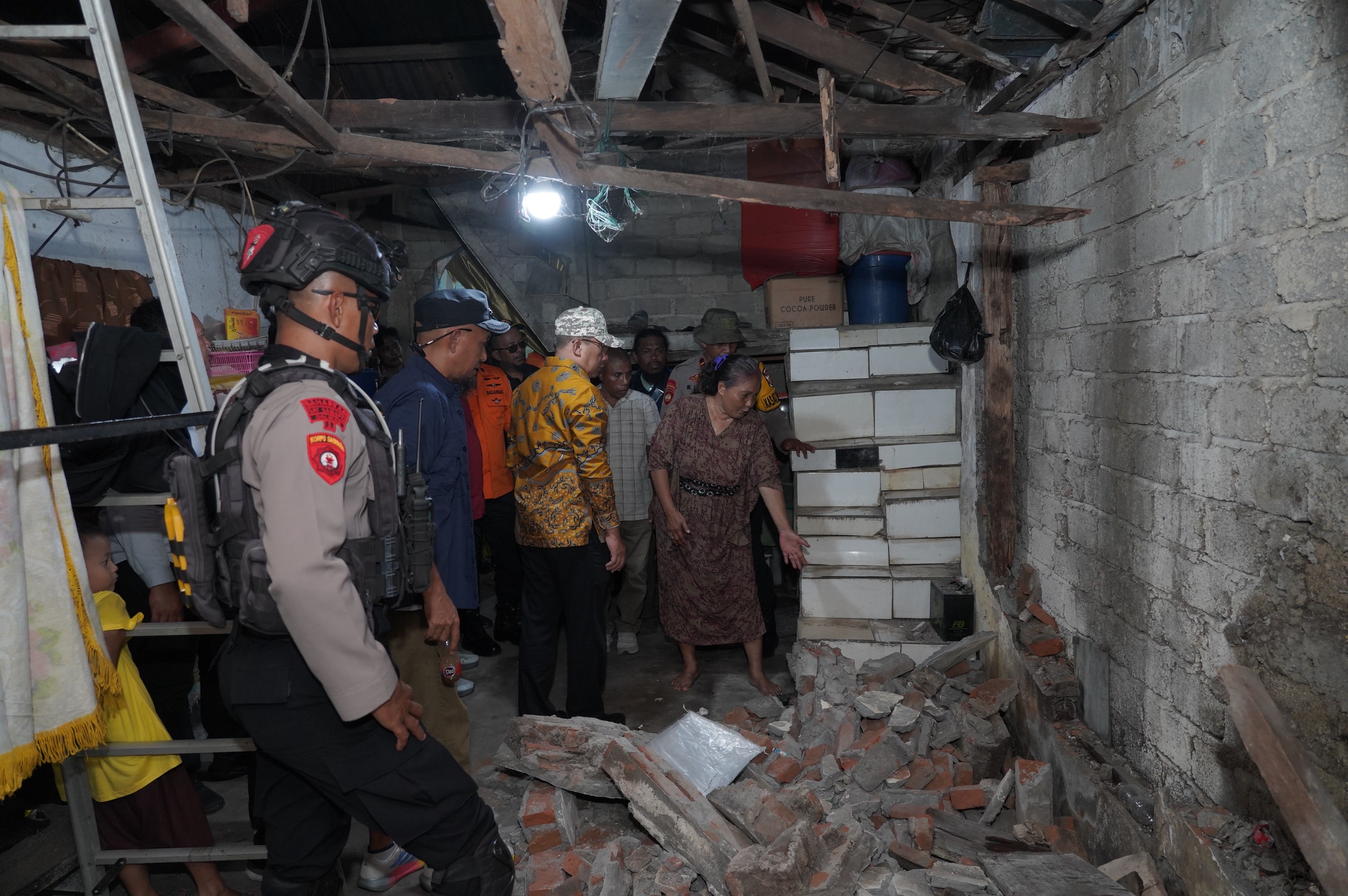 Selanjutnya, rombongan tiba di Kelurahan Mangga Dua Utara untuk meninjau rumah milik Ibu Lilis, Ibu Ati Rijali, dan Bapak Ali Maswara yang terdampak gempa bumi. Selain melakukan pengecekan kondisi bangunan, bantuan juga diberikan kepada masyarakat setempat yang mengalami dampak akibat bencana tersebut.