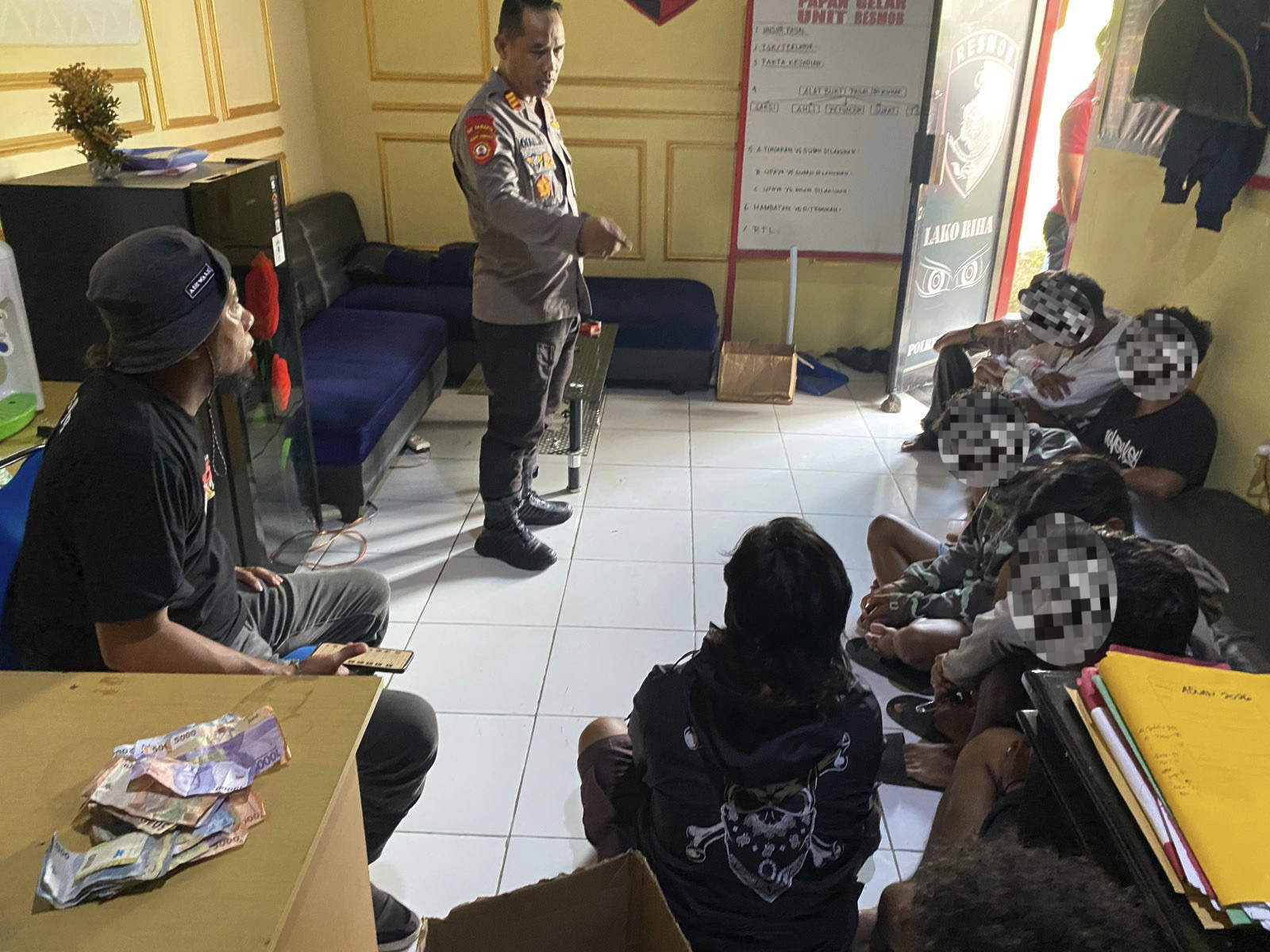 “petugas turut menyita barang bukti berupa uang tunai sebesar Rp200.000 yang diduga merupakan hasil pemalakan, serta satu unit sepeda motor Honda Revo Fit berwarna hitam merah tanpa dilengkapi tanda nomor polisi (TNKB).” Ungkap Kasat.