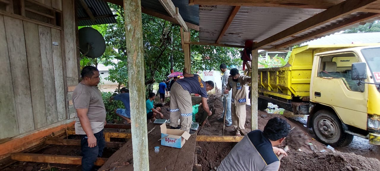 Aksi solidaritas dan pemulihan pasca banjir kembali digelar di Desa Taboso, Kecamatan Jailolo, Selasa (13/1). Personel gabungan bersama-sama masyarakat secara gotong royong membersihkan material lumpur dan sampah dari rumah-rumah warga yang terdampak, serta menguras saluran air dan gorong-gorong yang tersumbat.