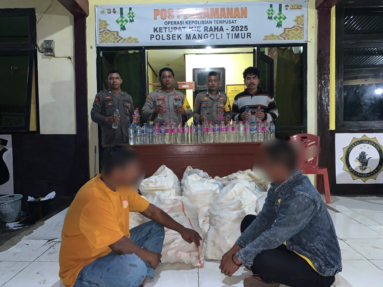 Kepolisian Sektor Mangoli Timur berhasil mengamankan ratusan minuman keras (miras) jenis cap tikus di salah satu Longboat yang terparkir ditepi pantai di Desa Capalulu Kecamatan. Mangoli Tengah, pada Rabu dini hari (11/2/26).