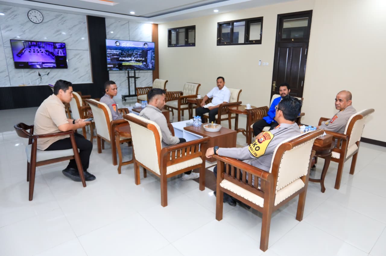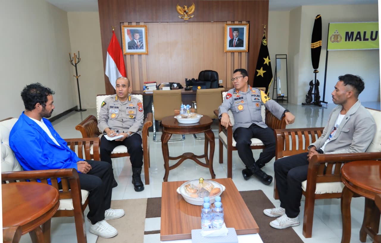 Kapolda Maluku Utara Irjen Pol. Drs. Waris Agono, M.Si. menerima audiensi dari Pergerakan Mahasiswa Islam Indonesia (PMII) di ruang kerjanya, Rabu (22/4/2026).
