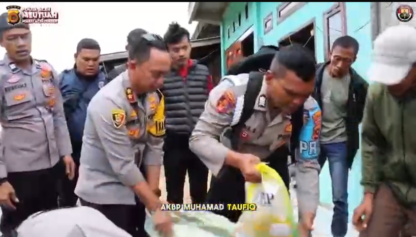 Takengon – Kapolres Aceh Tengah AKBP Muhamad Taufiq, S.I.K., M.H., menyalurkan langsung bantuan sembako kepada warga terdampak bencana banjir, banjir bandang, dan tanah longsor di Kecamatan Bintang, Kabupaten Aceh Tengah, Selasa (2/12/2025).