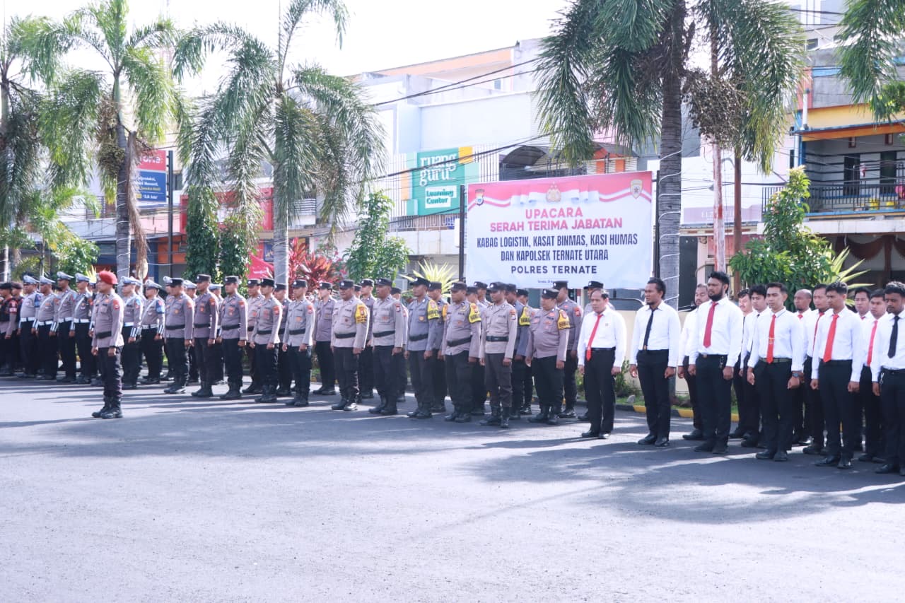 Sejumlah pejabat lama yang melaksanakan serah terima antara lain Kabag Logistik AKP Sudarlin Lanone, Kasat Binmas Iptu Nurdin Wakanubun, S.H., Kasi Humas AKP Umar Kombong, S.H., serta Kapolsek Ternate Utara Iptu Wahyudin.