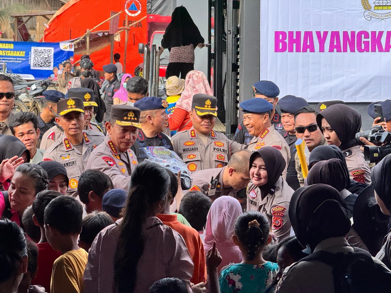 Bantuan dari Ibu Ketum Bhayangkari Masker (300 box), kasa (5 koli), Obat-obatan (1.745 box), nasi instan (10 dus), sajiku (6 dus), bumbu racik (3 dus), bumbu dapur bubuk (2 dus), royco rasa sapi (10 dus), bumbu opor ayam (1 dus), royco rasa ayam (10 dus), promina (2 dus), nyam-nyam (4 dus), top (2 dus), nabati (3 dus), rokok (1.300 bungkus), mukena (200 pcs), selimut (300 pcs), tas selempang (50 pcs), dan seragam sekolah (591 pcs).