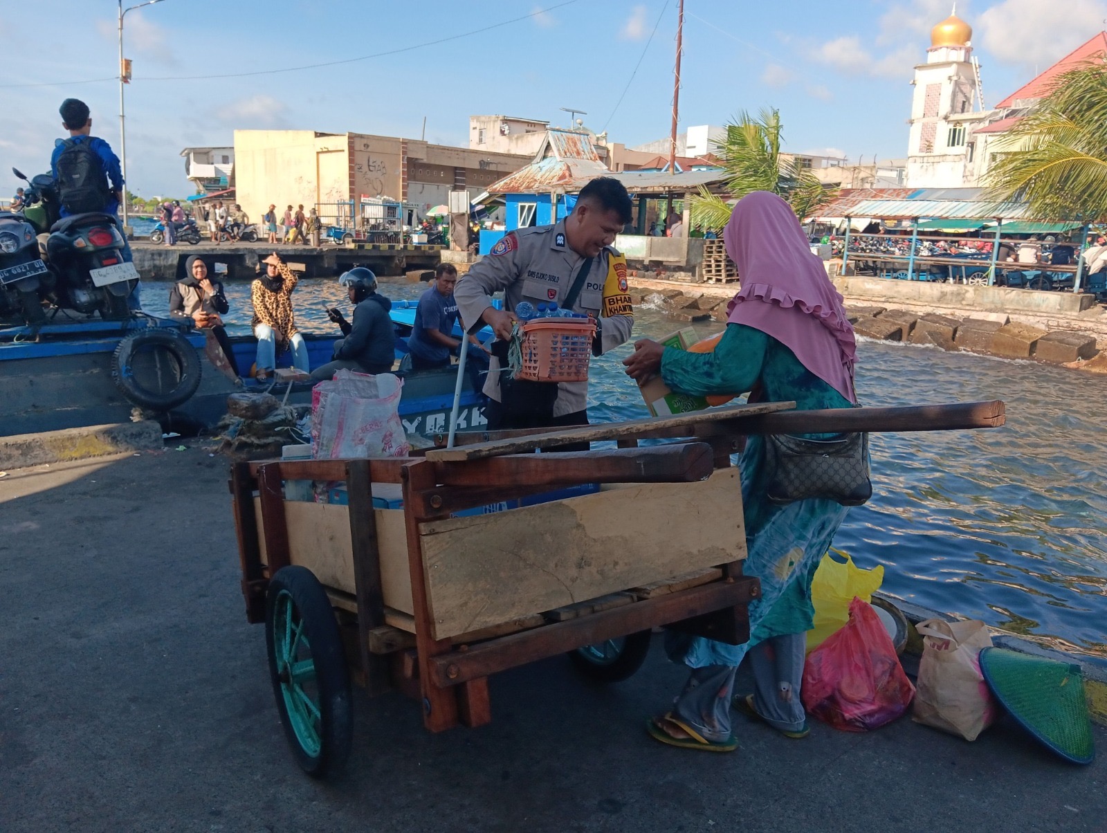 Kehadiran Aiptu Idris di lokasi dermaga tidak hanya untuk memastikan situasi tetap aman dan kondusif, tetapi juga memberikan rasa nyaman kepada para pedagang serta masyarakat yang beraktivitas di sekitar pelabuhan. Ia tampak membantu warga yang berjualan sambil menyampaikan pesan-pesan kamtibmas agar tetap menjaga ketertiban dan kebersihan di lingkungan pelabuhan.