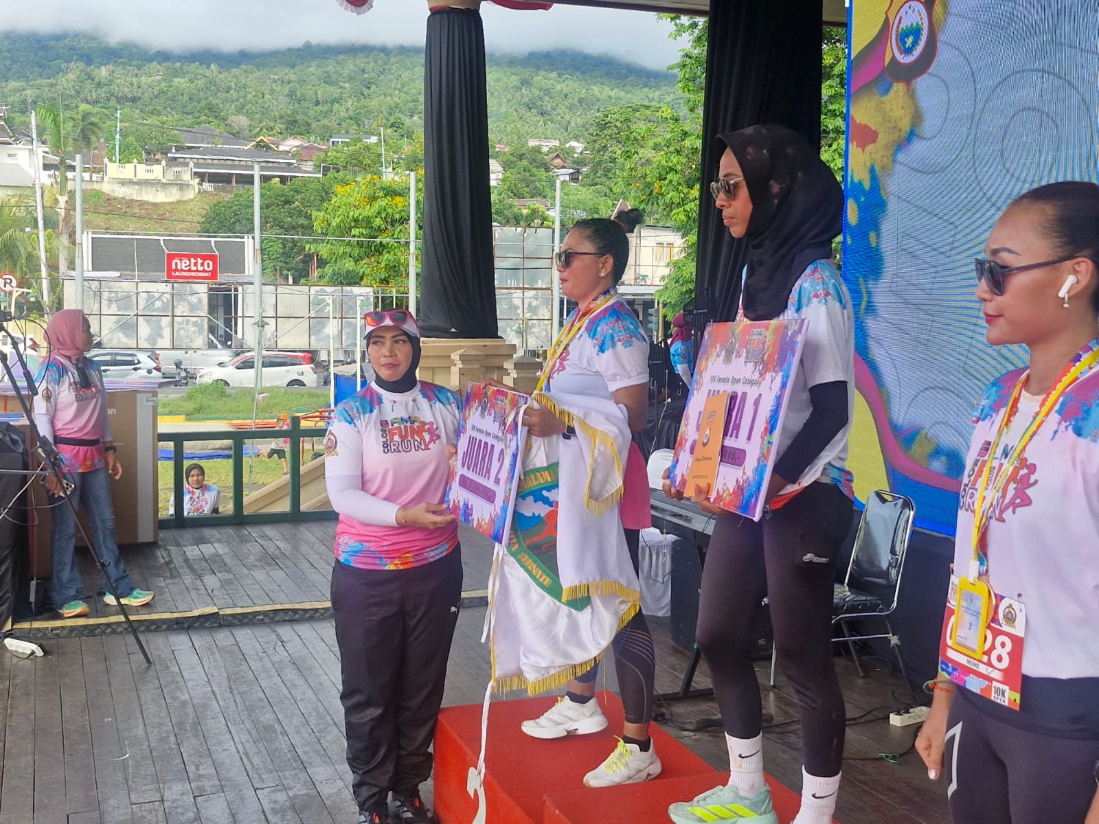 Usai kegiatan lari, acara dilanjutkan dengan senam aerobik, pembagian door prize, dan hiburan musik yang dimeriahkan oleh penyanyi lokal Jackson Zeran dengan lagu populernya “Tabola-Bale”, yang menambah semarak suasana penuh warna di Lapangan Ngalaramo.