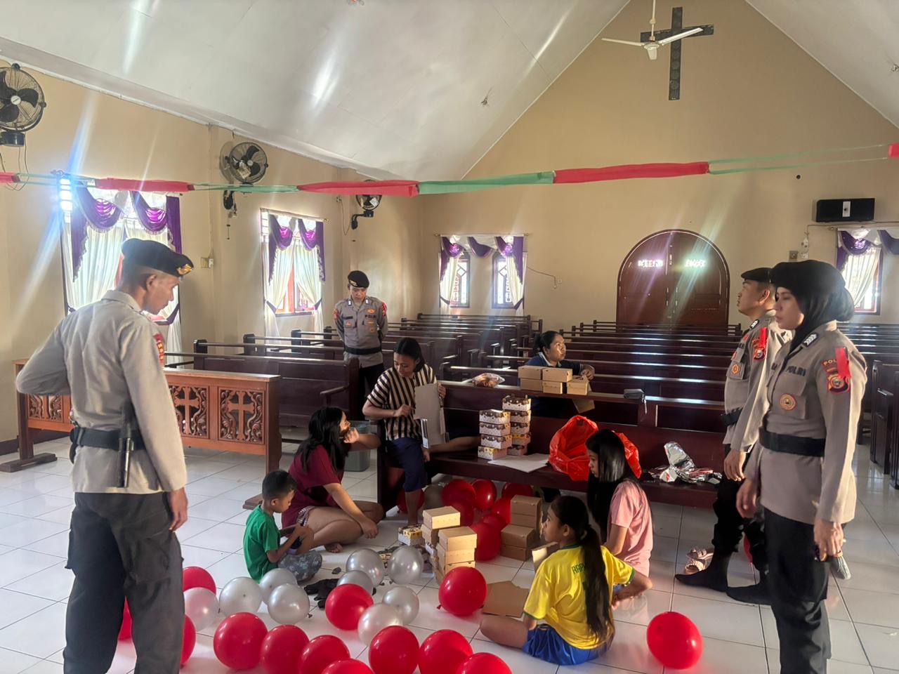 Personel Subsatgas Pamobvit melakukan koordinasi langsung dengan pendeta dan pengurus gereja terkait jadwal pelaksanaan ibadah Natal, jumlah jemaat, serta langkah-langkah pengamanan guna memastikan ibadah berjalan aman, tertib, dan lancar.