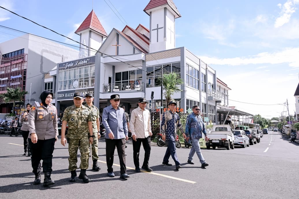 Ternate – Kepala Kepolisian Resor (Kapolres) Ternate AKBP Anita Ratna Yulianto, S.I.K., M.H., bersama unsur Forum Koordinasi Pimpinan Daerah (Forkopimda) Kota Ternate, melakukan peninjauan langsung pelaksanaan ibadah Natal 2025 di sejumlah gereja di wilayah Kota Ternate, Kamis (25/12/25).