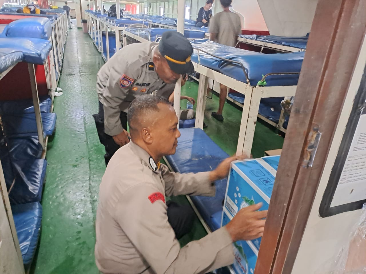 Ternate – Menjelang perayaan Natal dan Tahun Baru (Nataru), personel Polsek Kawasan Pelabuhan Ahmad Yani melaksanakan razia minuman keras (miras) dan barang ilegal lainnya di Kapal Motor (KM) Uki Raya 04 yang tiba dari Pelabuhan Manado di Pelabuhan Ahmad Yani, Kelurahan Kota Baru, Kecamatan Ternate Tengah, Jumat (19/12/25) pagi.