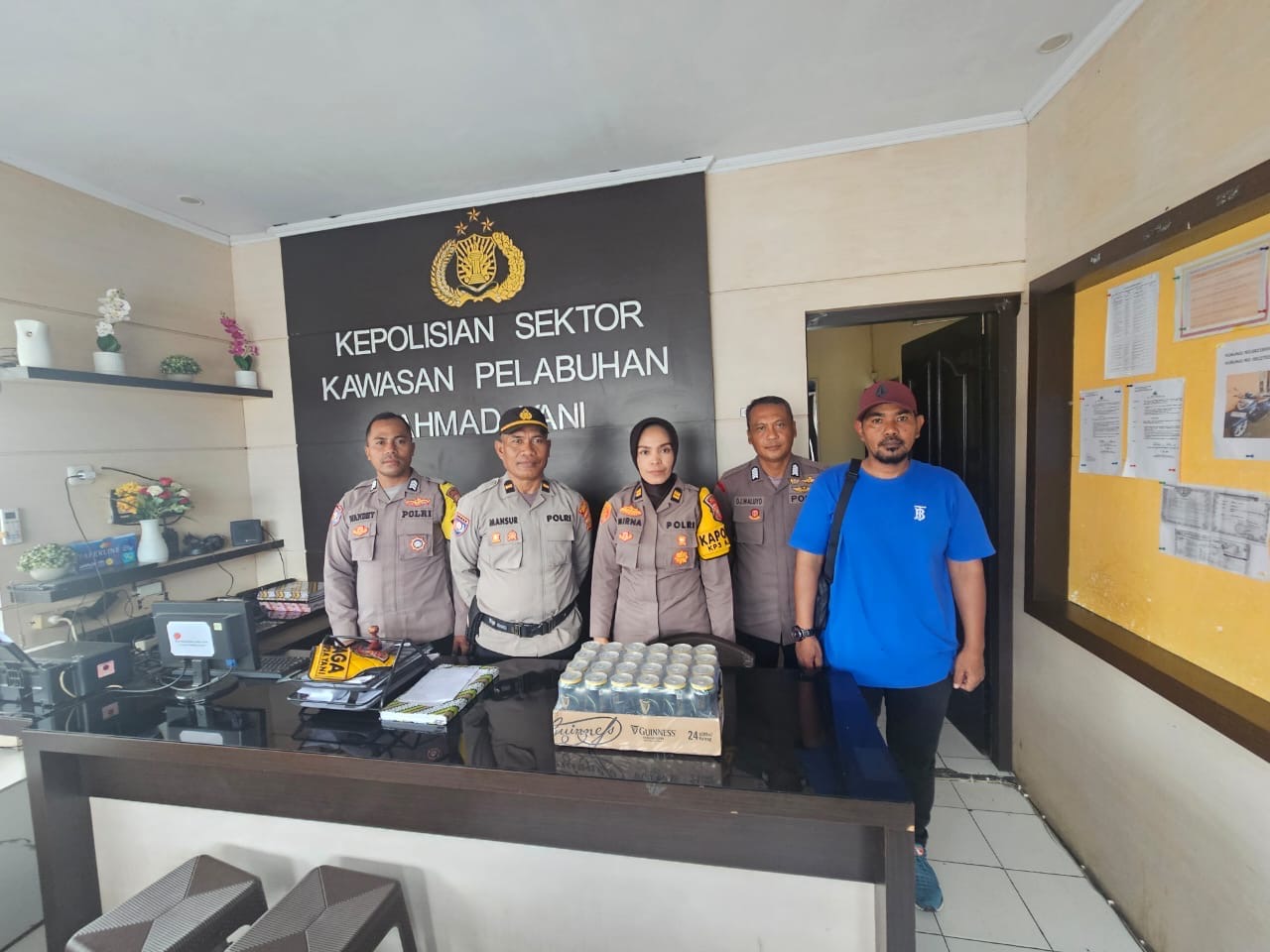 Kapolsek Kawasan Pelabuhan Ahmad Yani, Iptu Mirrna Oramali, S.H., M.H., melalui Kasi Humas Polres Ternate Ipda Sudirjo, S.I.P., menjelaskan bahwa dalam kegiatan pemeriksaan tersebut, petugas menemukan minuman keras berupa 1 (satu) dus sedang berisi 24 (dua puluh empat) kaleng bir merek Guinness ukuran 500 ml.