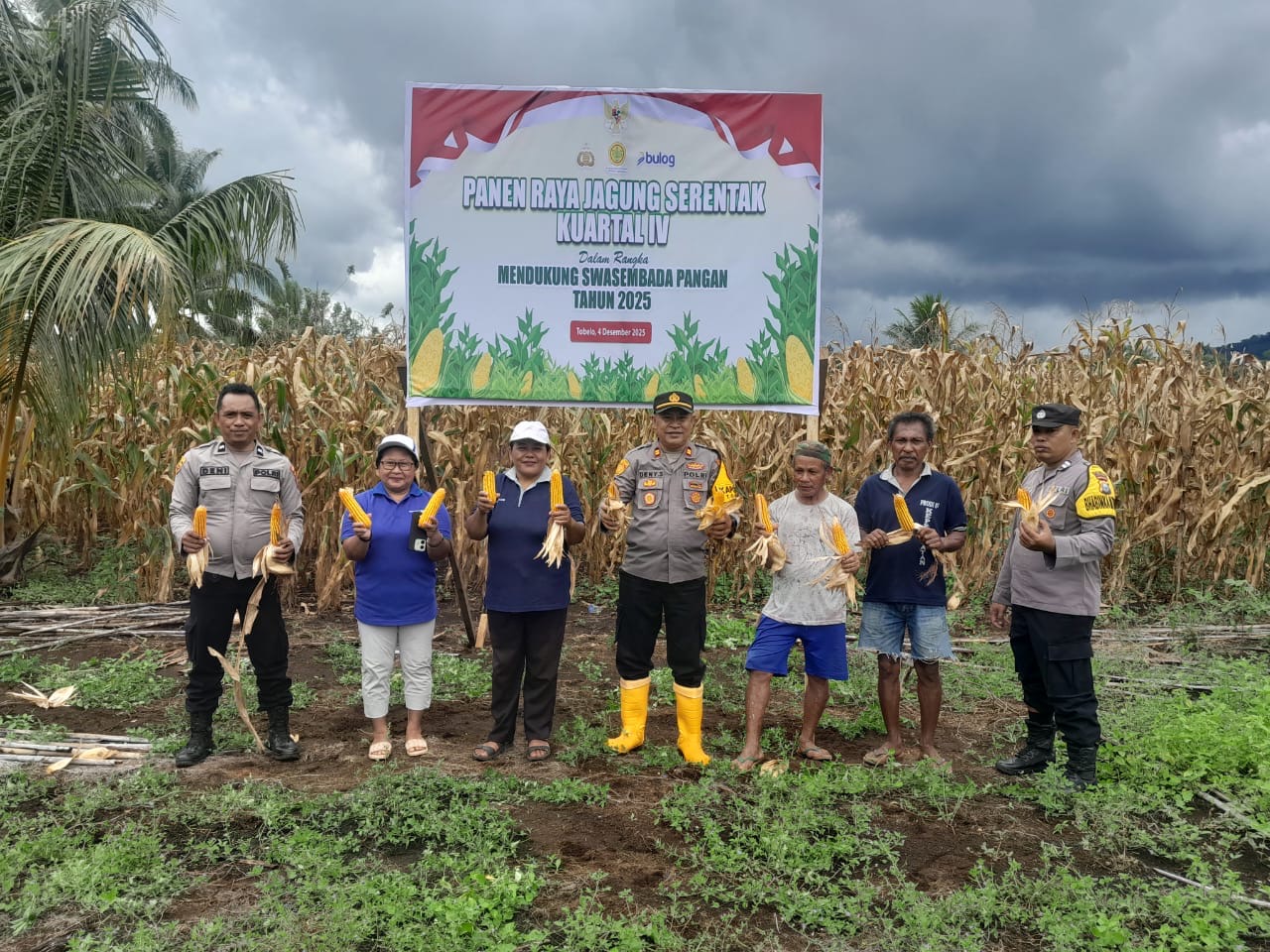 Dalam kesempatan tersebut, Kapolsek Tobelo Selatan IPTU Deny Salaka, S.H. menyampaikan bahwa kegiatan panen ini merupakan wujud nyata dari kolaborasi lintas sektor dalam mendukung Program Ketahanan Pangan Nasional yang sejalan dengan Asta Cita.