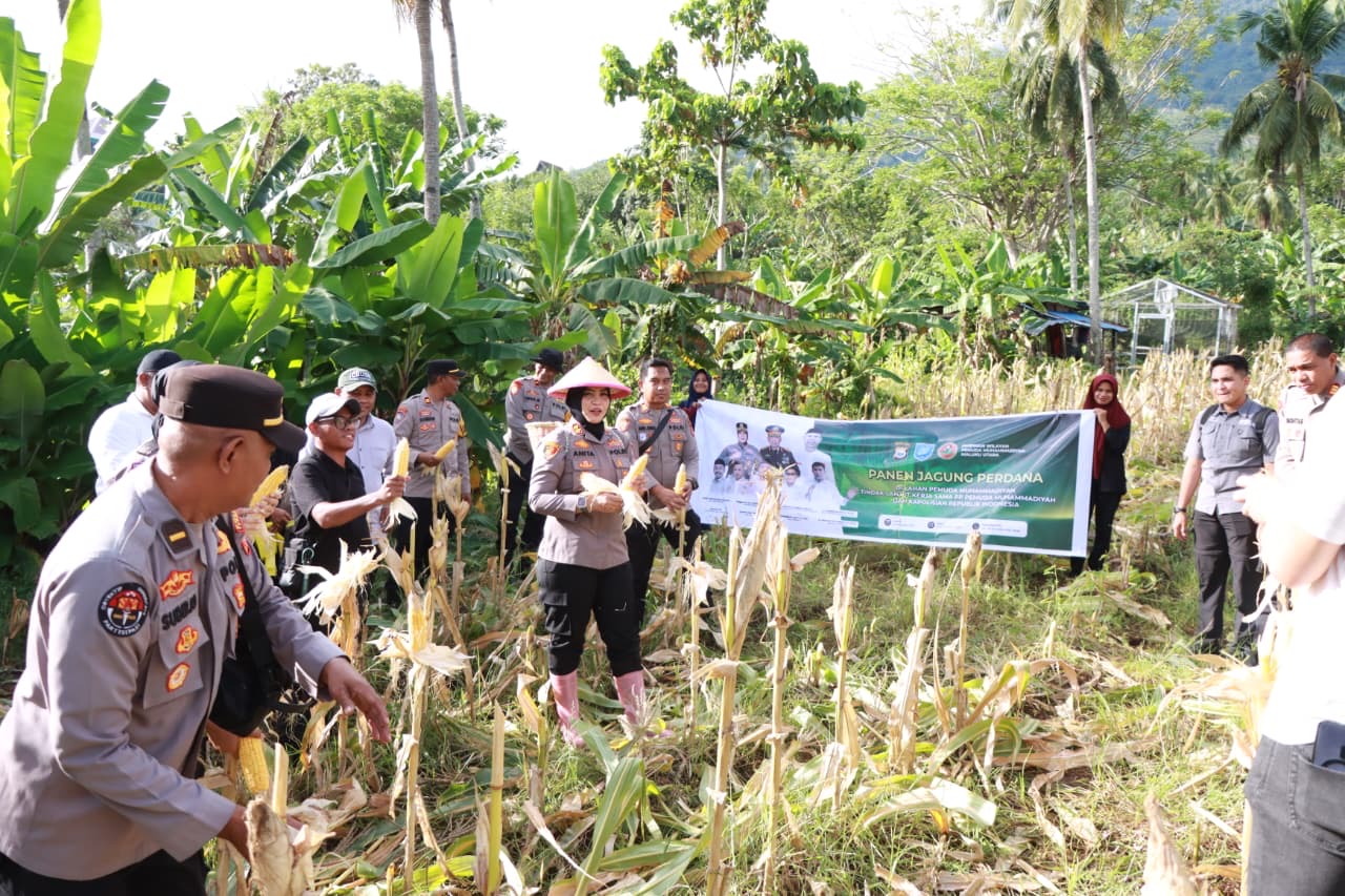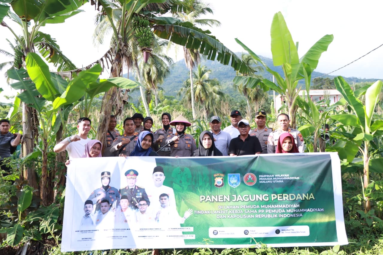 Ternate – Polres Ternate bersama Pemuda Muhammadiyah Maluku Utara melaksanakan kegiatan Panen Jagung Perdana di lahan pertanian milik Pemuda Muhammadiyah yang berlokasi di Kelurahan Fitu, Kecamatan Ternate Selatan, pada Kamis (04/12/25).