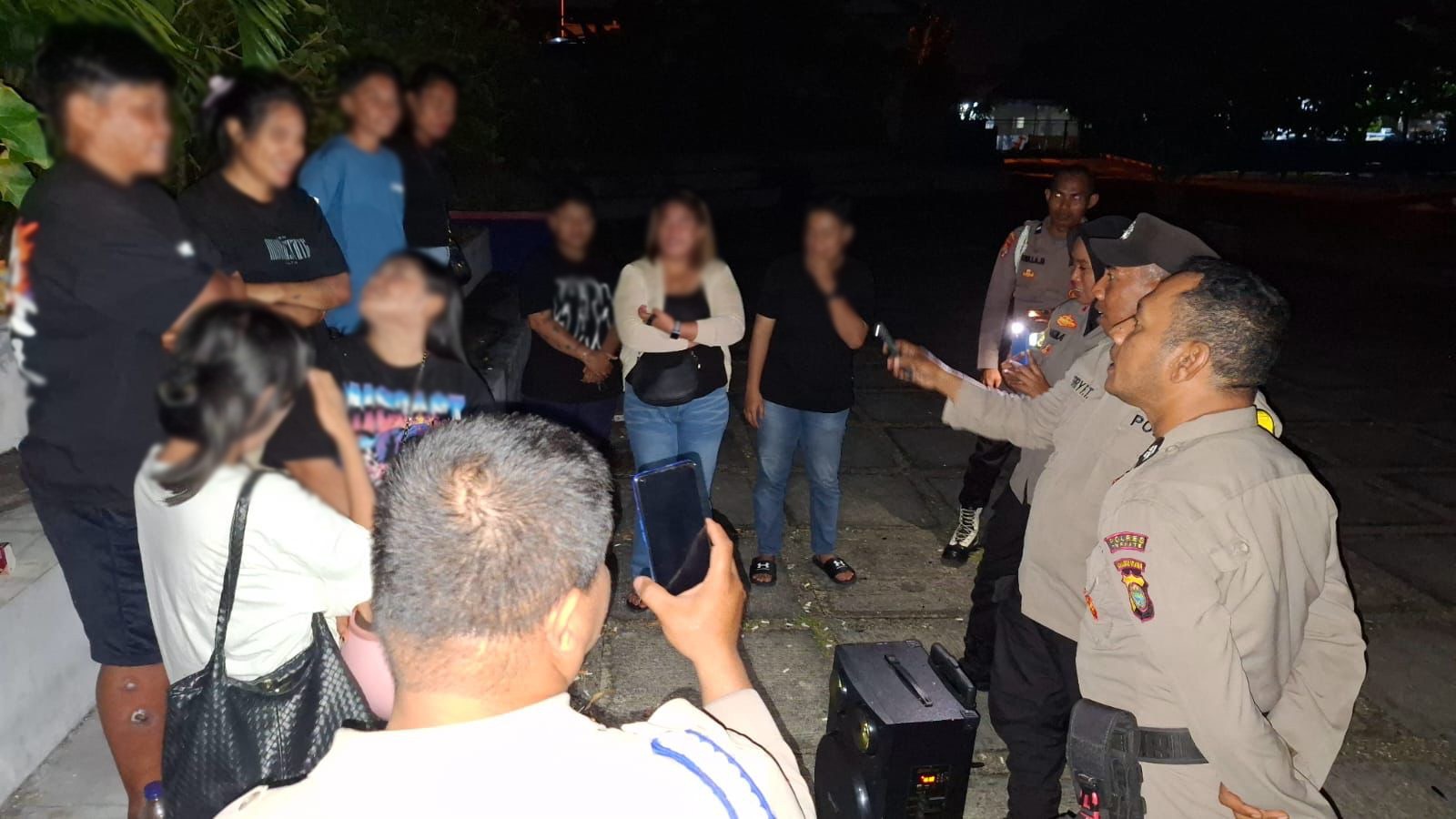 Selanjutnya, tim patroli bergerak ke Kelurahan Tabona untuk menindaklanjuti laporan masyarakat terkait sekelompok pemuda yang berkumpul sambil mengonsumsi minuman keras. Personel berhasil membubarkan kelompok tersebut dan memberikan imbauan agar kembali ke rumah masing-masing serta turut menjaga keamanan lingkungan.