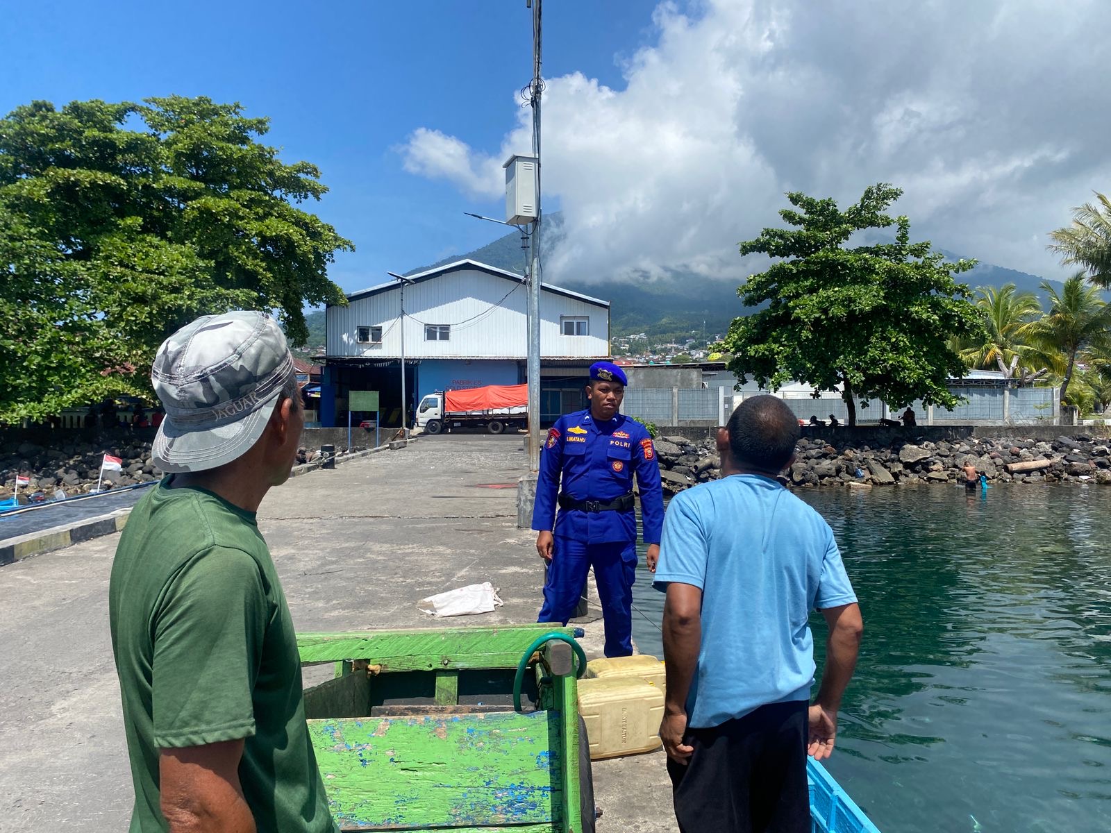 Direktorat Polairud Polda Maluku Utara melaksanakan kegiatan sambang dan pemolisian masyarakat (polmas) kepada para nelayan di Pelabuhan Perikanan Bastiong, Kota Ternate, Rabu (22/10/2025).