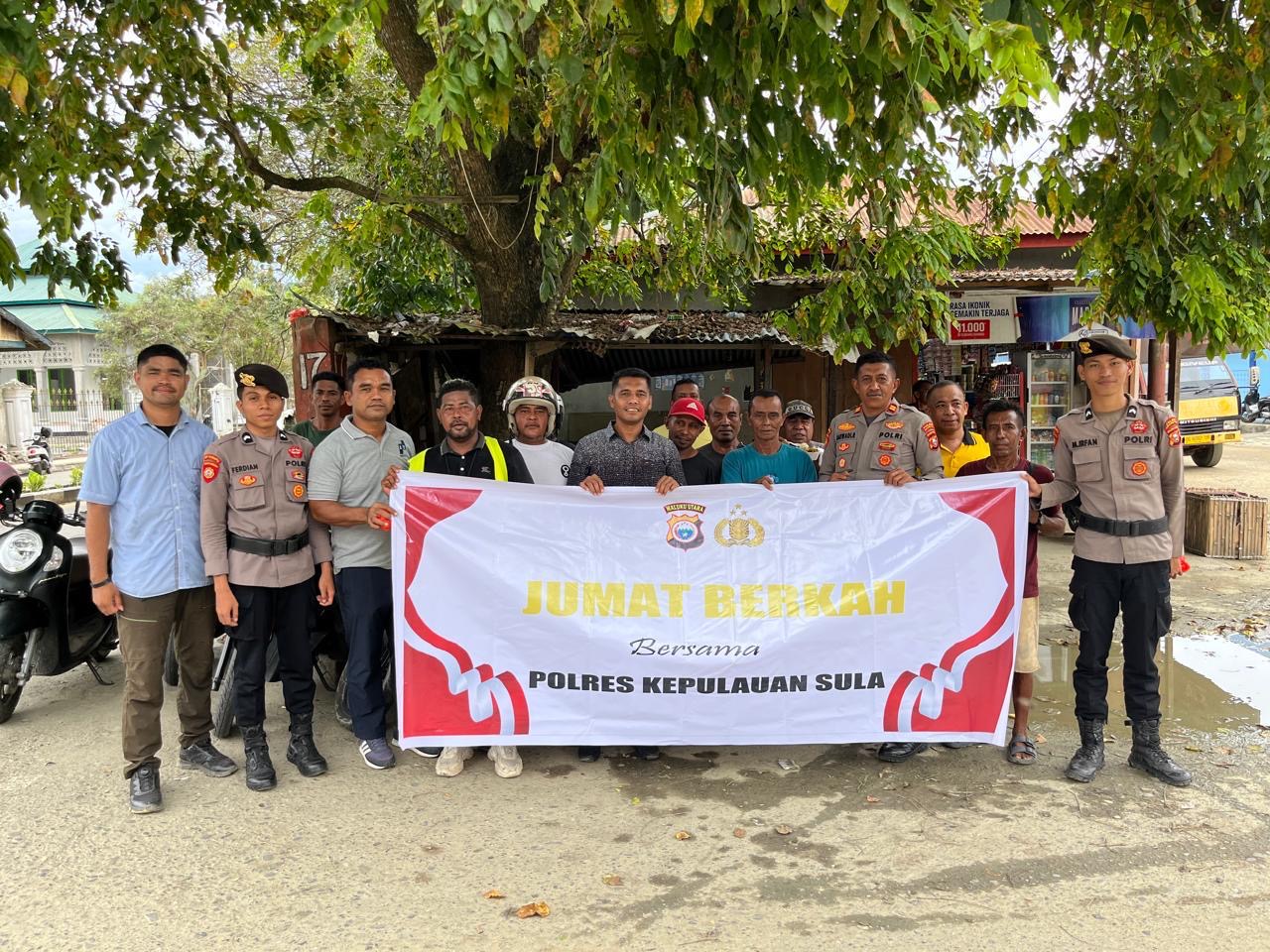 Polres Kepulauan Sula kembali melaksanakan kegiatan sosial Jum’at Berkah sebagai bentuk kepedulian dan upaya mempererat hubungan Polri dengan masyarakat. Kegiatan berlangsung pada Jumat (21/11/2025) di area pertokoan Desa Fagudu, Kecamatan Sanana, Kabupaten Kepulauan Sula.
