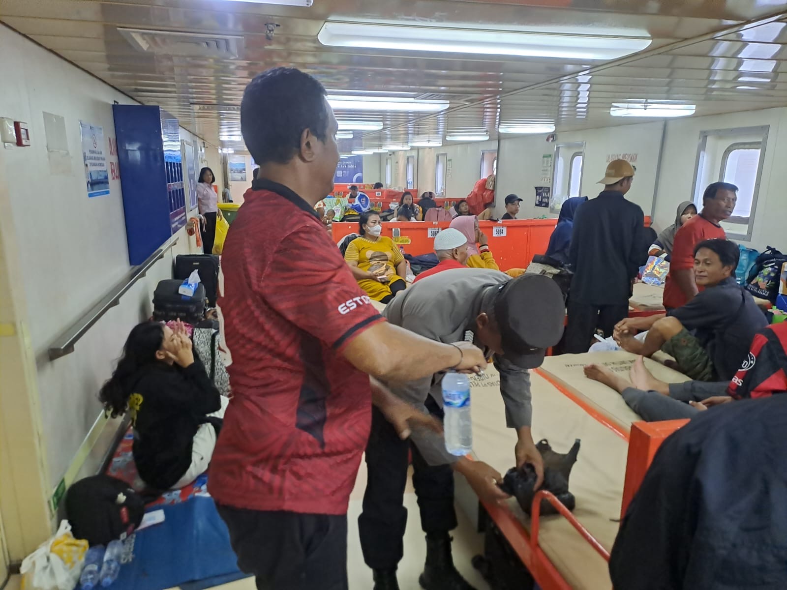 Ternate – Personel Piket Polsek Kawasan Pelabuhan Ahmad Yani melaksanakan razia minuman beralkohol ilegal dan barang ilegal lainnya di atas Kapal Penumpang KM. Dorolonda yang tiba dari Pelabuhan Bitung, Kelurahan Kota Baru, Kecamatan Ternate Tengah, pada Sabtu, (10/01/26).