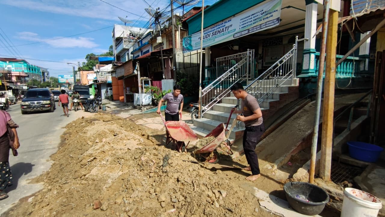 Kapolsek Sibolga Sambas, IPTU Marwa, turun langsung memimpin kegiatan tersebut bersama personel Polres Sibolga dan personel BKO Brimob. Dengan menggunakan peralatan seadanya, personel gabungan bahu-membahu membersihkan material longsor demi membuka kembali akses jalan agar dapat dilalui oleh warga.
