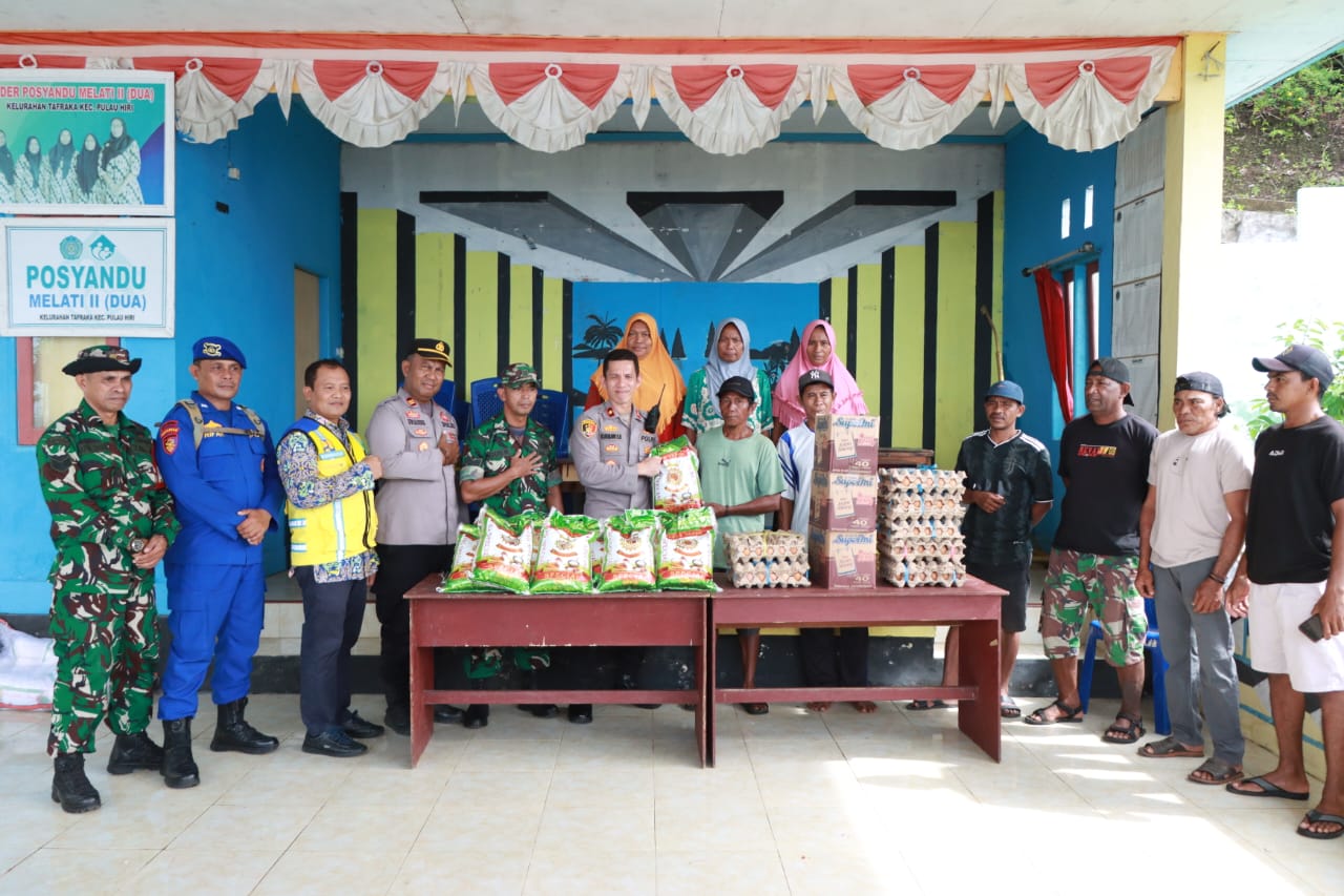 Dirpolairud Polda Malut KBP Azhari Juanda, S.I.K., sebagai Plh Kapolres Ternate bersama Wakapolres Ternate, Kompol Kurniawi H. Barmawi, S.I.K., M.Si., terjun langsung meninjau lokasi banjir untuk melihat kondisi lingkungan di titik lokasi banjir sekaligus menyalurkan bantuan kemanusiaan berupa sembako kepada warga terdampak.