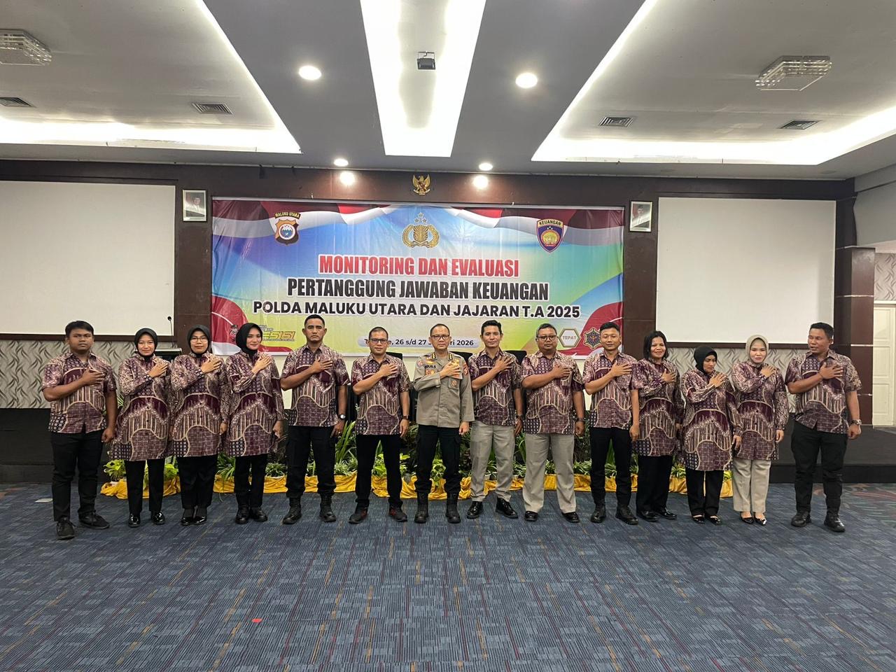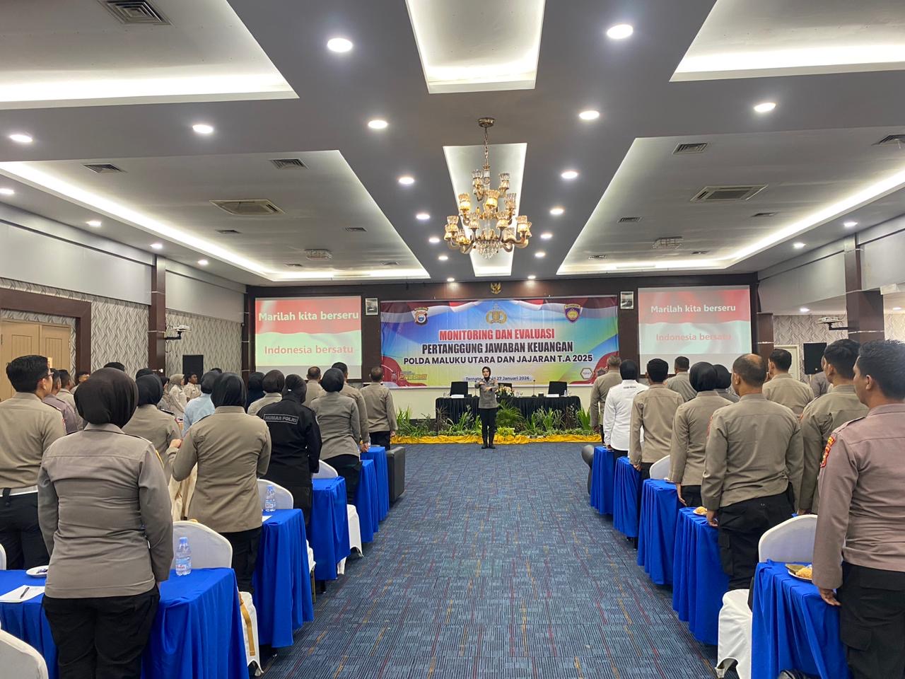 Polda Maluku Utara melaksanakan kegiatan Monitoring dan Evaluasi (Monev) Pertanggungjawaban Keuangan Polda Maluku Utara dan jajaran Tahun Anggaran (T.A.) 2025. Kegiatan ini bertujuan untuk memastikan pengelolaan keuangan negara berjalan secara tertib, akuntabel, transparan, dan sesuai dengan ketentuan yang berlaku.