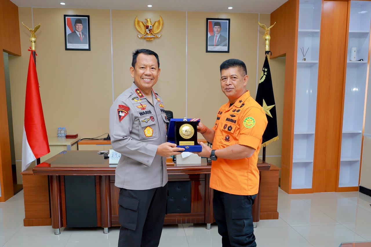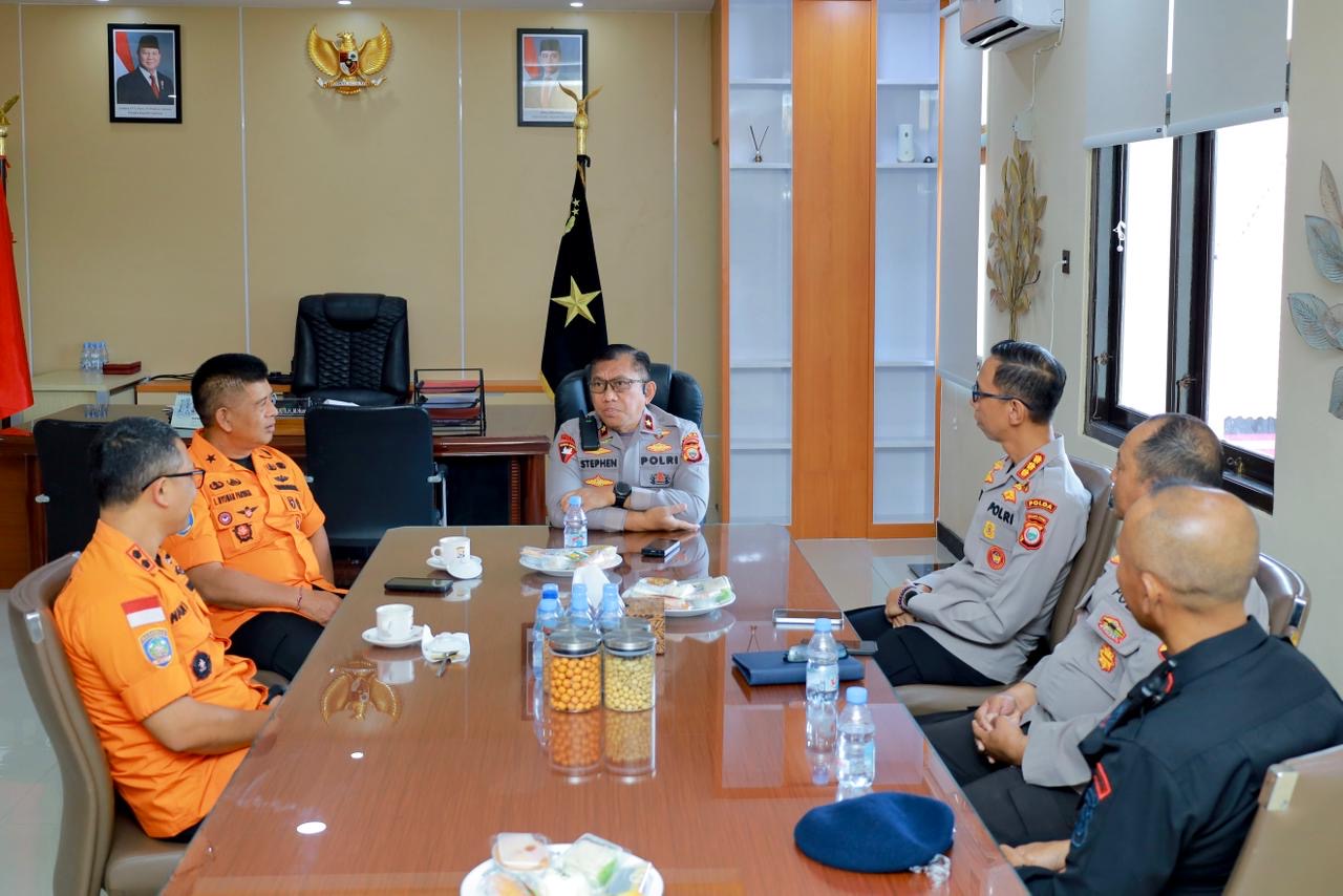 Wakapolda Maluku Utara Brigjen Pol. Stephen M. Napiun, S.I.K., S.H., M.Hum., menerima audiensi Inspektur Badan Nasional Pencarian dan Pertolongan (Basarnas) Brigjen TNI I Nyoman Parwata, S.E., M.Si., M.Tr. (Han), di ruang kerjanya, Jumat (3/10/2025).