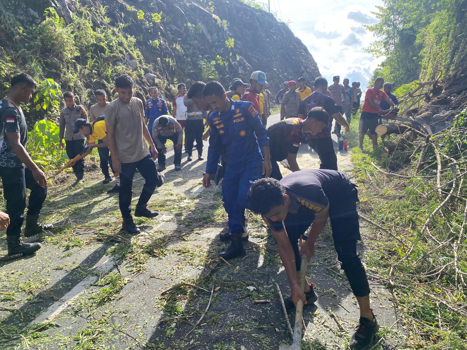 Kabid menambahkan, di lapangan personel Polres Halut membersihkan ruas jalan di Gunung Wonge, Desa Limau, yang menuju Loloda Utara. Mereka juga membantu memindahkan rumah warga yang terancam banjir ke lokasi yang lebih aman.