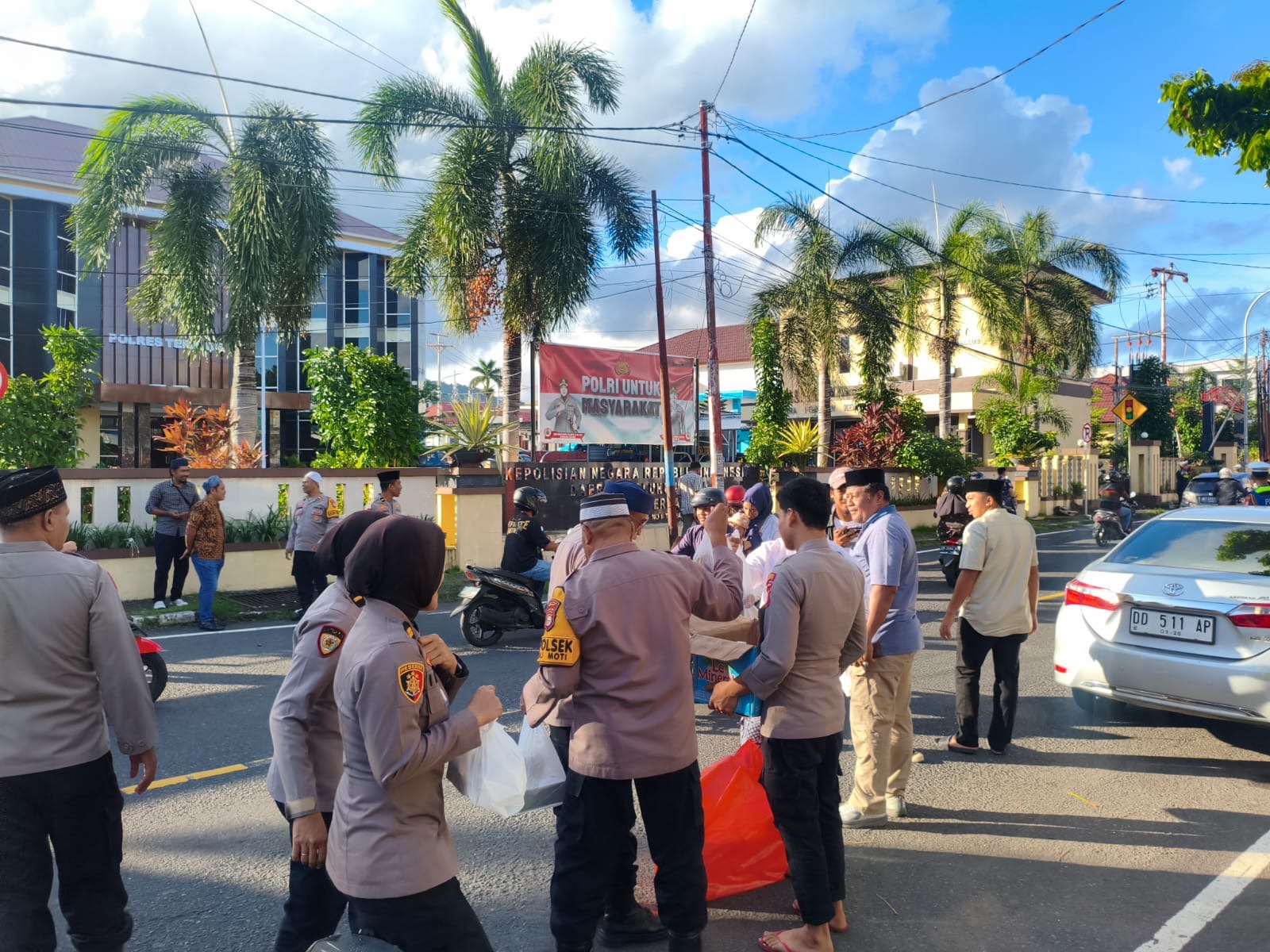Kegiatan sosial ini dilaksanakan sebagai bentuk kepedulian Polri kepada masyarakat yang sedang menjalankan ibadah puasa. Ratusan paket takjil dibagikan kepada pengendara dan warga yang melintas menjelang waktu berbuka puasa.