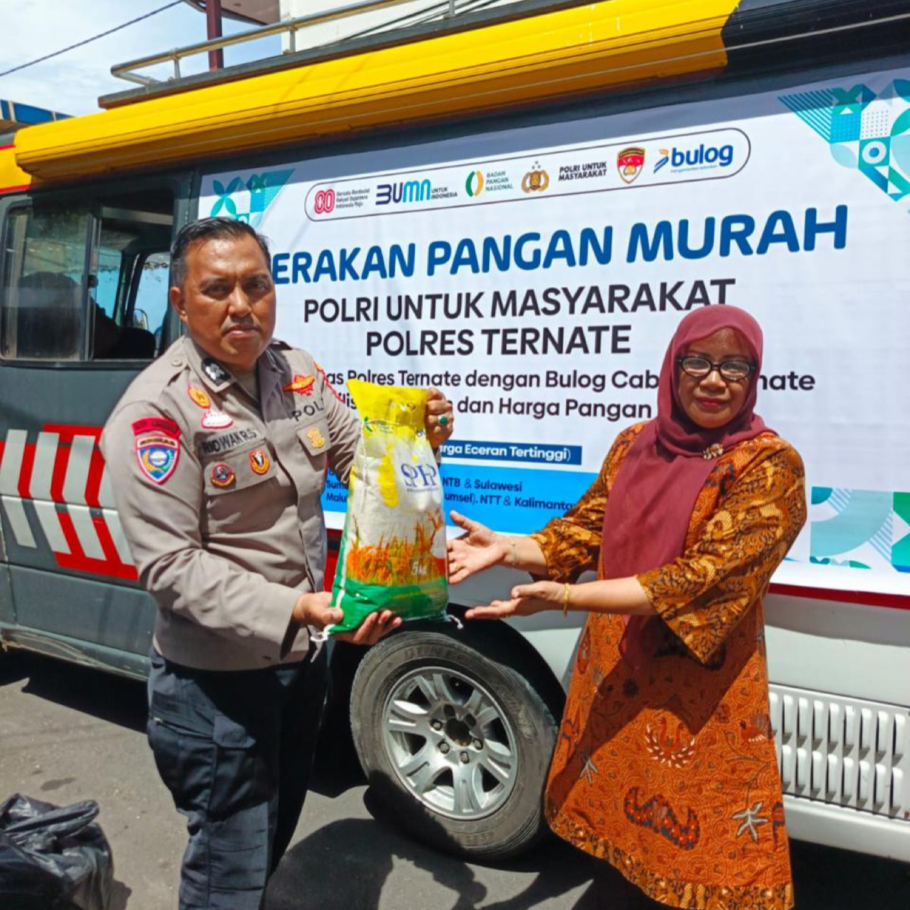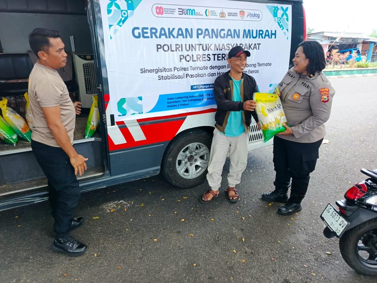 Kasat Binmas Polres Ternate Iptu Nurdin Wakanubun SH, Melalui Kasi Humas Polres Ternate Akp Umar Kombong S.H Menyampaikan Kegiatan ini dilaksanakan sebagai wujud kepedulian Polri terhadap kondisi ekonomi masyarakat, serta untuk mendukung program pemerintah dalam menstabilkan harga pangan, khususnya beras, menjelang masa rawan inflasi dan guna menjamin ketersediaan bahan pokok dengan harga terjangkau.