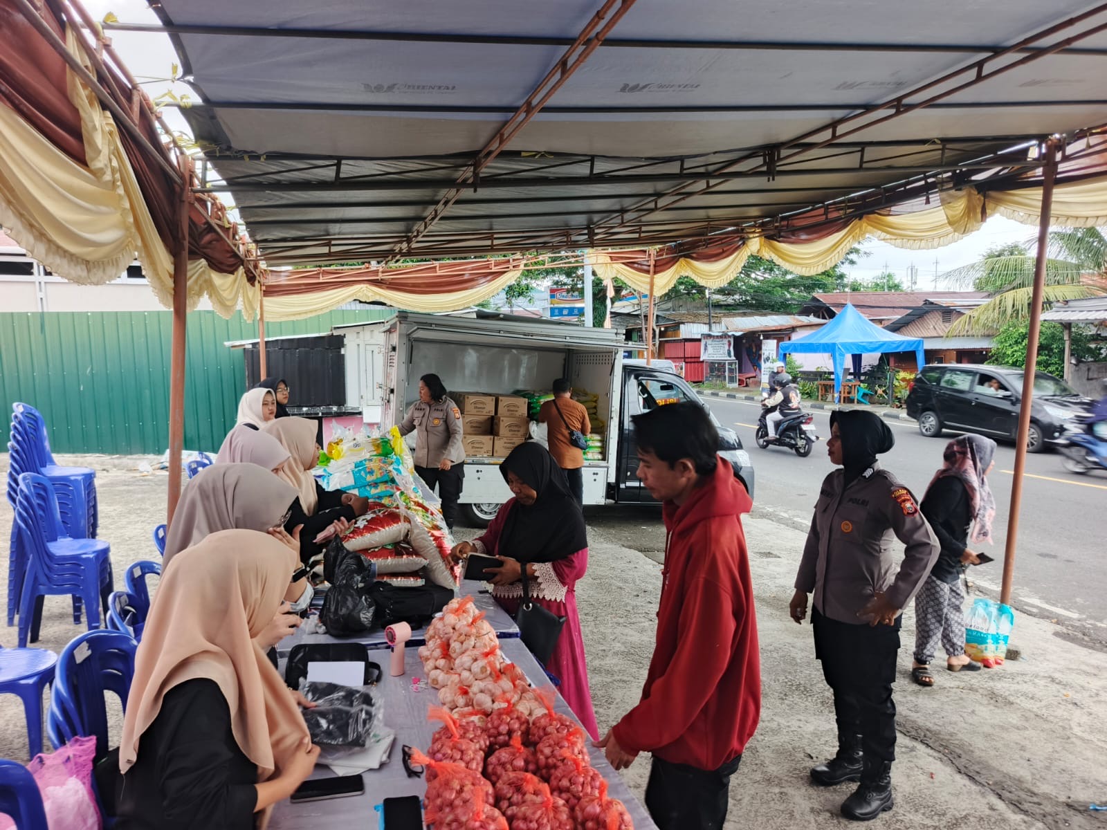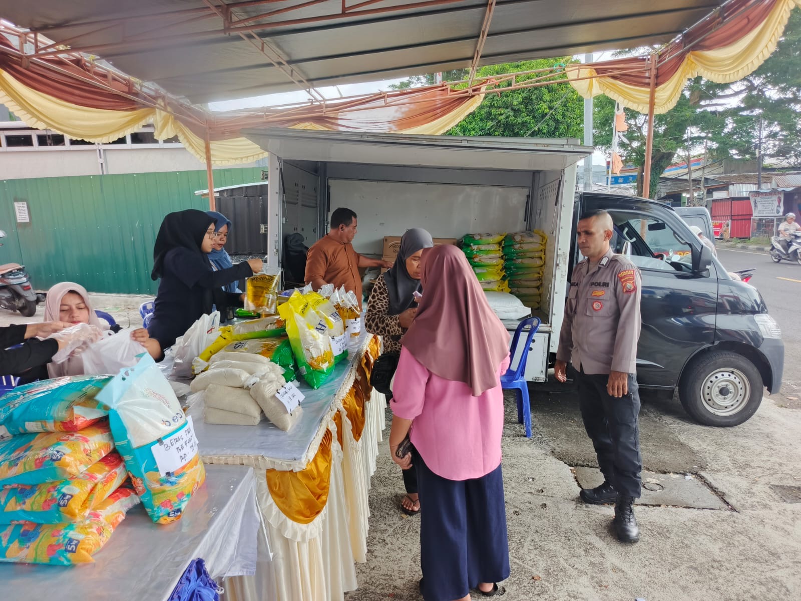 Dalam kegiatan tersebut, masyarakat dapat membeli berbagai kebutuhan pokok dengan harga yang lebih terjangkau, di antaranya beras SPHP 5 kg seharga Rp60.000, beras premium 5 kg Rp78.000, beras spesial 10 kg Rp165.000, minyak goreng “Minyak Kita” 2 liter Rp30.000, gula pasir 1 kg Rp18.000, tepung terigu Segitiga Biru 1 kg Rp13.000, cabai keriting ½ kg Rp18.000, bawang putih ½ kg Rp23.000, serta bawang merah ½ kg Rp30.000.