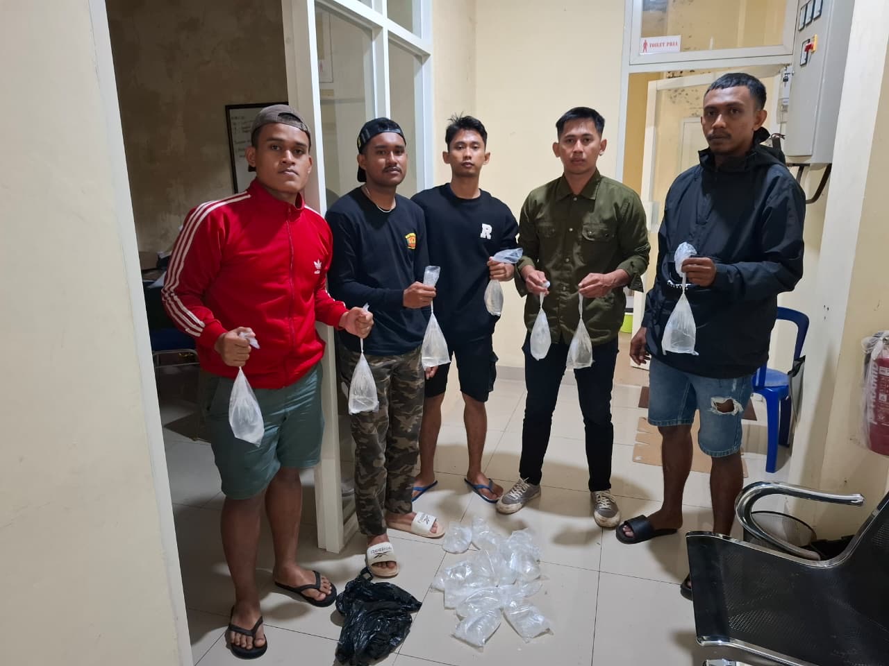 Menindaklanjuti laporan tersebut, personel Sat Samapta langsung bergerak menuju lokasi dan melaksanakan razia. Dari hasil kegiatan, ditemukan barang bukti berupa 19 (sembilan belas) kantong plastik berisi miras jenis captikus yang ditinggalkan tanpa diketahui pemiliknya.