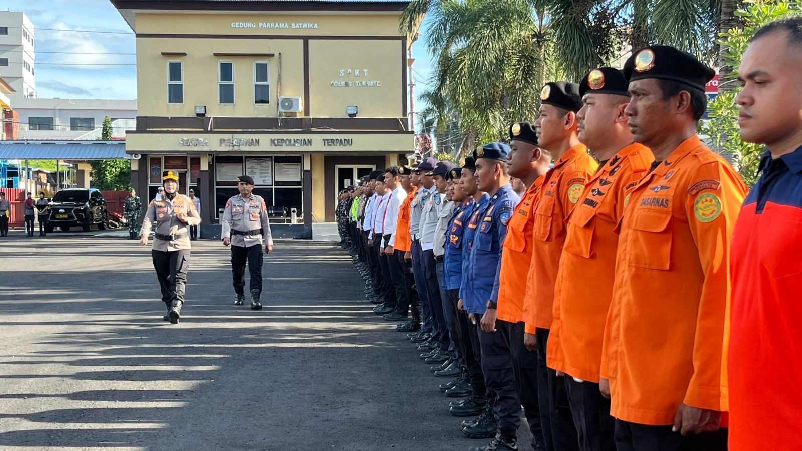 Apel Gelar Pasukan dipimpin langsung oleh Kapolres Ternate AKBP Anita Ratna Yulianto, S.I.K., M.H., selaku penanggung jawab kegiatan, serta dihadiri unsur Forkopimda dan instansi terkait, di antaranya Dandim 1501/Ternate, perwakilan Lanal Ternate, Sekretaris Daerah Kota Ternate, perwakilan Kejaksaan Negeri Ternate, Pengadilan Negeri Ternate, Basarnas, Dinas Pemadam Kebakaran, serta para Pejabat Utama Polres Ternate.