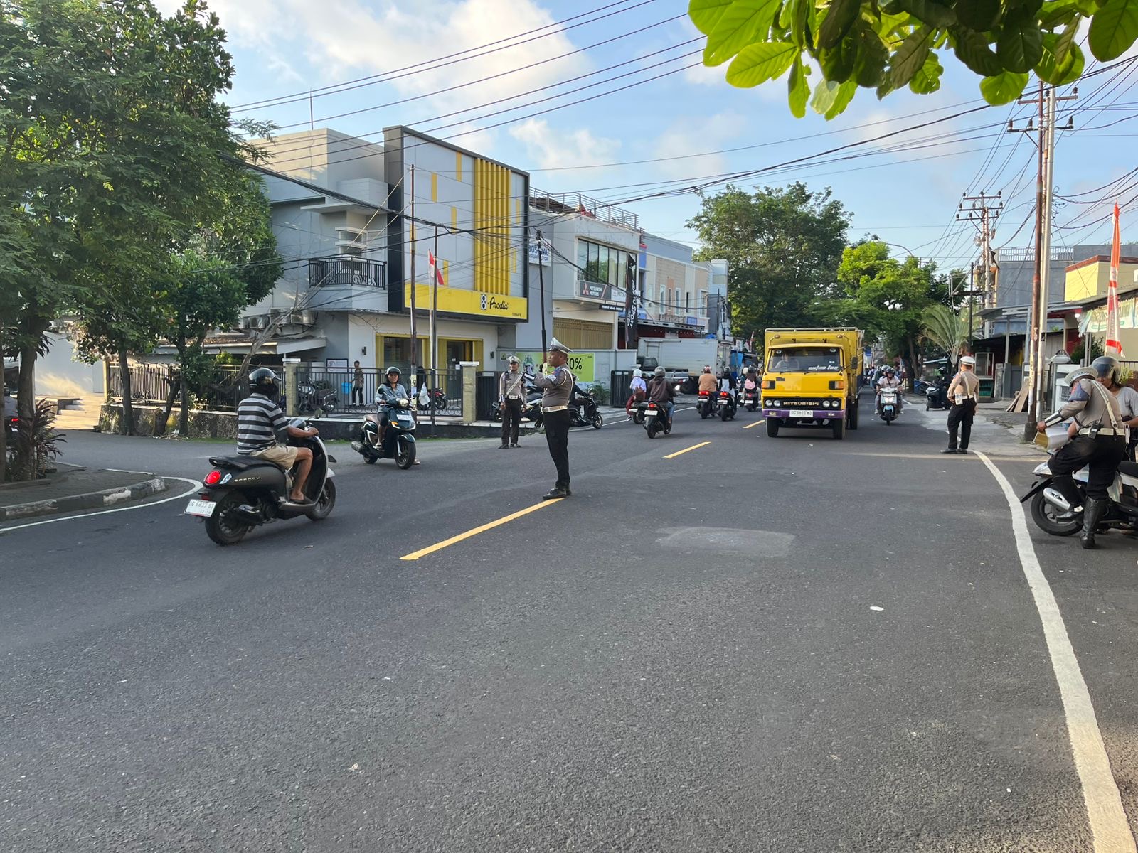 Kegiatan ini dilakukan dengan menempatkan personel di titik-titik strategis yang padat lalu lintas, seperti persimpangan jalan utama, pasar, dan area perkantoran, untuk mengatur arus kendaraan, memberikan pelayanan kepada warga, dan mencegah terjadinya kecelakaan.