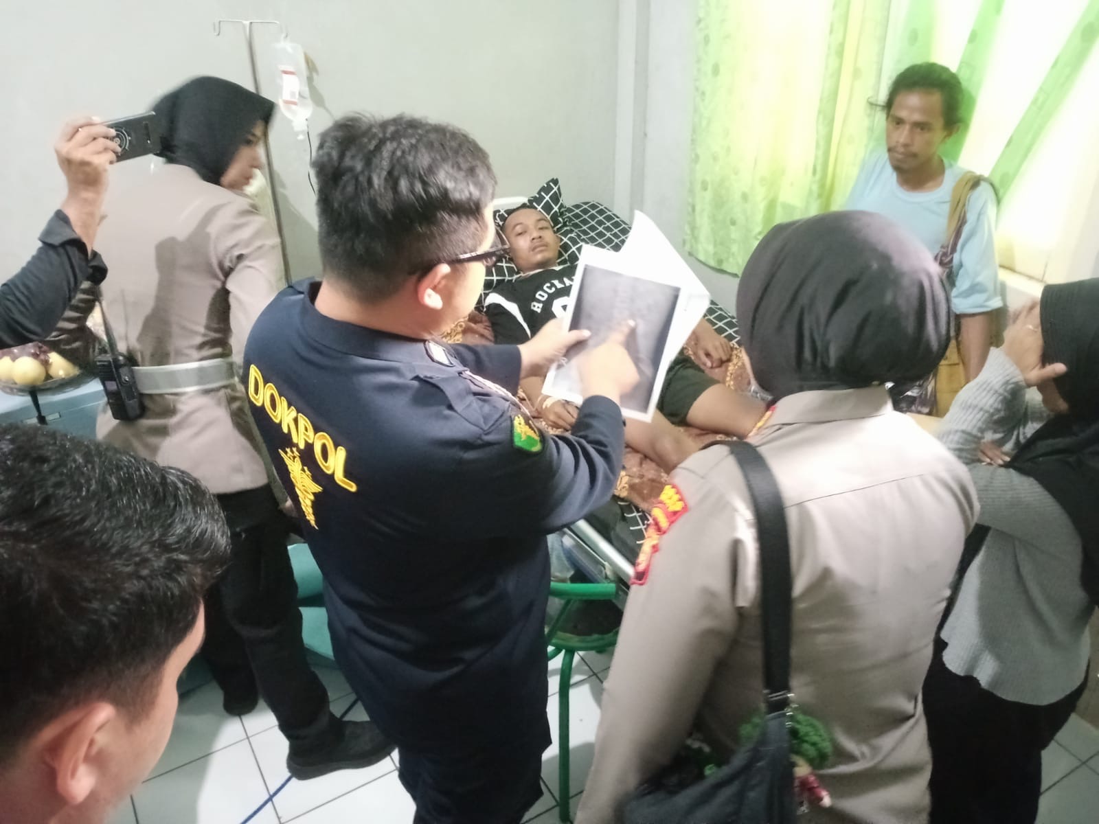 Kemudian pada sore hari, Olas kembali mengeluh nyeri pinggang hebat, lemas pada kedua kaki, serta kencing bercampur darah. Ia segera dirujuk ke RSUD Chasan Boesorie untuk perawatan lanjutan. jelas Kasi Humas.