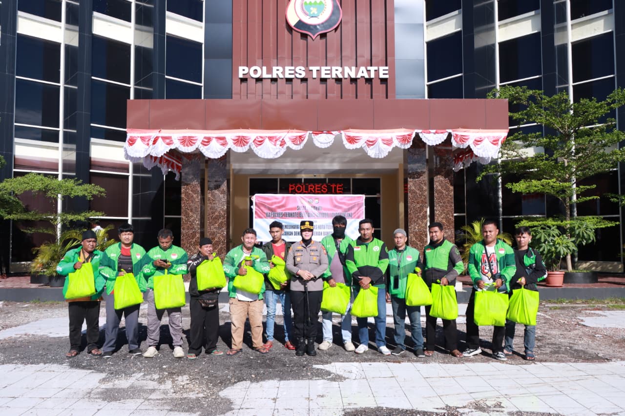 Ternate – Sebagai bentuk kepedulian Polri terhadap masyarakat, khususnya para pekerja sektor informal, Polres Ternate melaksanakan kegiatan pembagian bantuan sosial (bansos) kepada para driver ojek online Kota Ternate yang bertempat di Mako Polres Ternate, pada Senin (20/10/25).