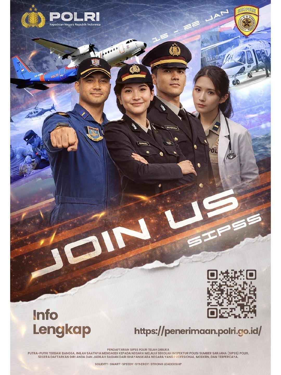 Kepolisian Negara Republik Indonesia (Polri) resmi membuka Seleksi Penerimaan Sekolah Inspektur Polisi Sumber Sarjana (SIPSS) Tahun Anggaran 2026. Pendaftaran dibuka mulai 15 hingga 22 Januari 2026, dan dapat diikuti oleh lulusan S1, S2, D-IV, hingga dokter spesialis untuk jurusan Patalogi Anatomik dan Mikrobiologi Klinik. Informasi tersebut disampaikan melalui pengumuman resmi Biro Sumber Daya Manusia (SDM) Polda Malut.