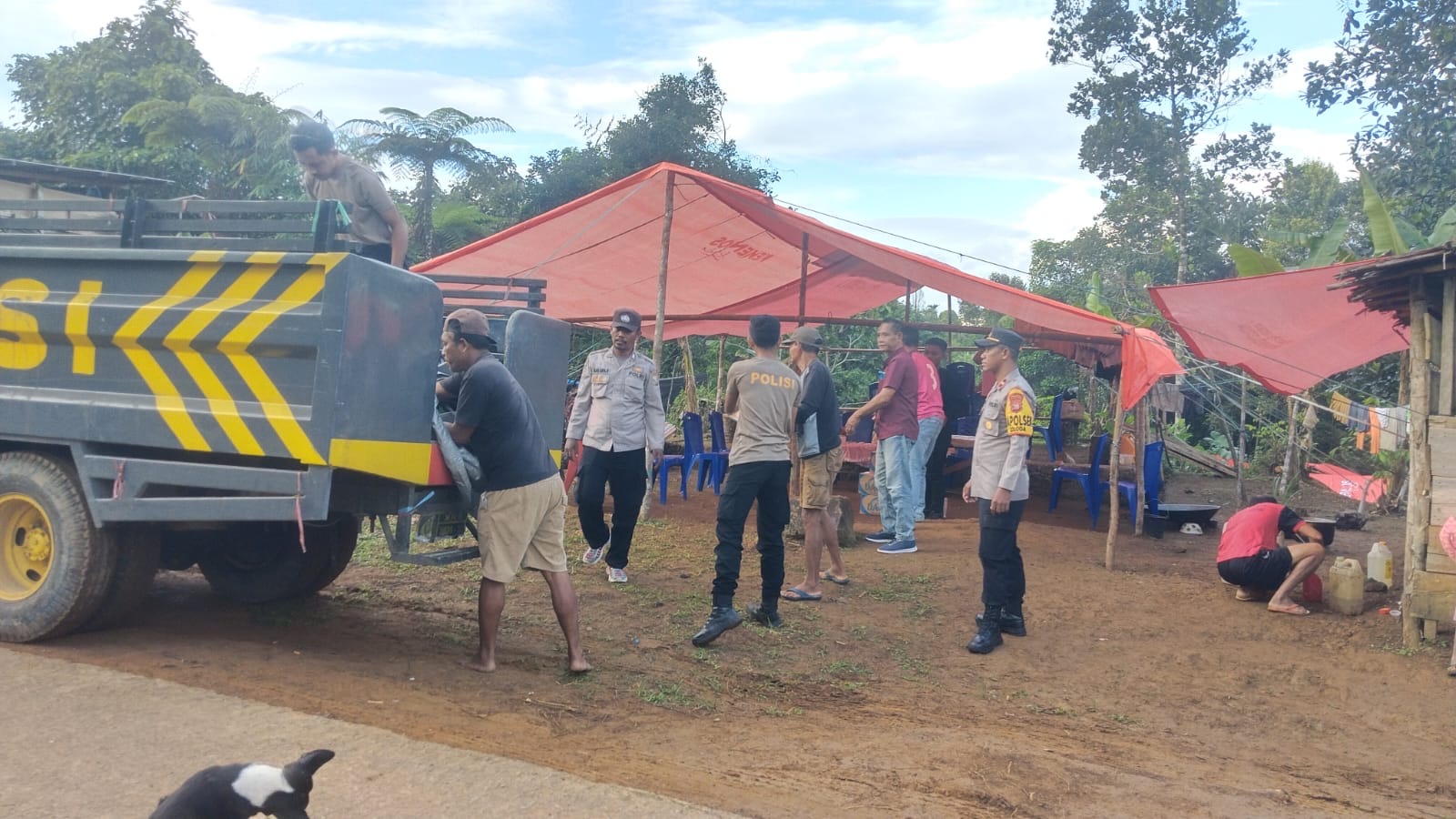 Di tengah suasana duka akibat bencana alam yang melanda Desa Totala Jaya, Kecamatan Loloda, kehadiran aparat Kepolisian menjadi penguat harapan bagi warga yang kini harus bertahan di tempat pengungsian.