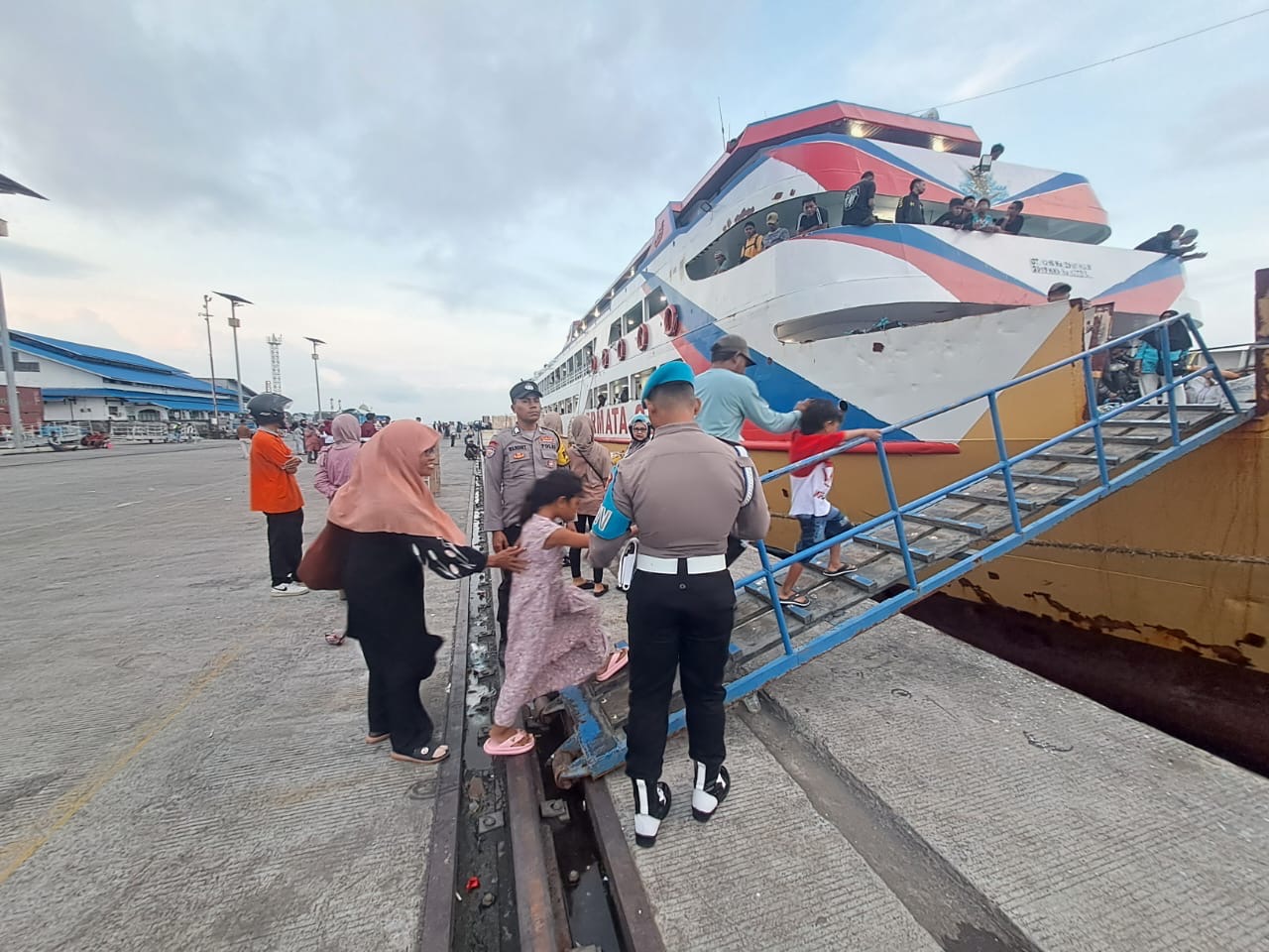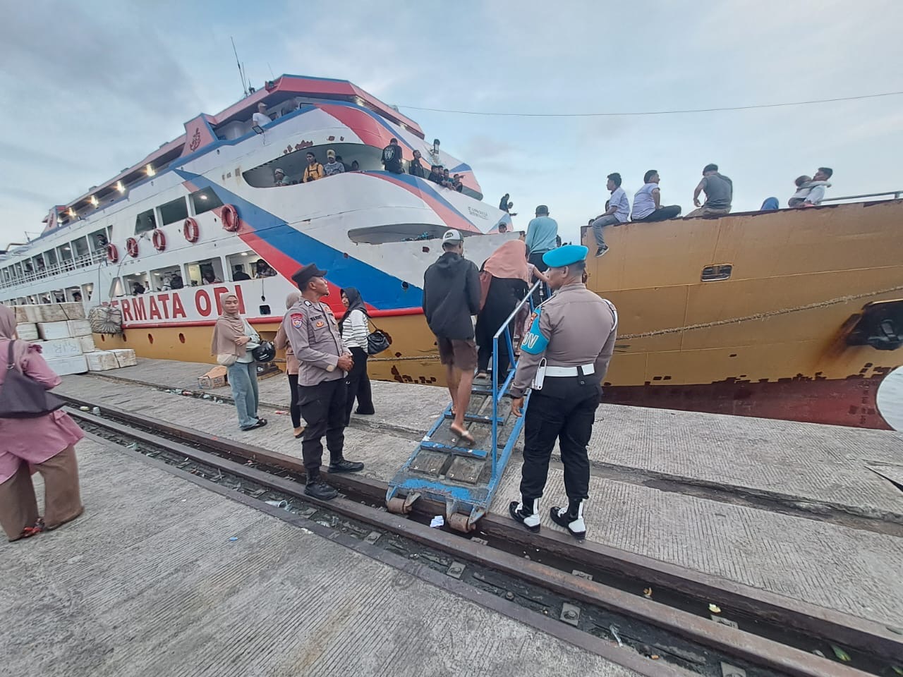 Selain itu, petugas juga aktif memberikan imbauan kamtibmas, membantu pengaturan arus penumpang dan kendaraan, serta bersinergi dengan pihak pelabuhan dan instansi terkait dalam menjaga keamanan lingkungan.