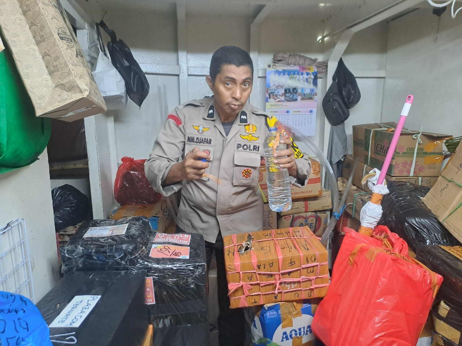 Kapolsek Kawasan Pelabuhan Ahmad Yani, Iptu Mirna Oramali, S.H., M.H., melalui Kasi Humas Polres Ternate, Ipda Sudirjo, S.I.P., menjelaskan bahwa dalam pemeriksaan tersebut, petugas menemukan minuman beralkohol ilegal yang disimpan di ruang penitipan barang kapal dan disamarkan di antara tumpukan kardus lainnya.