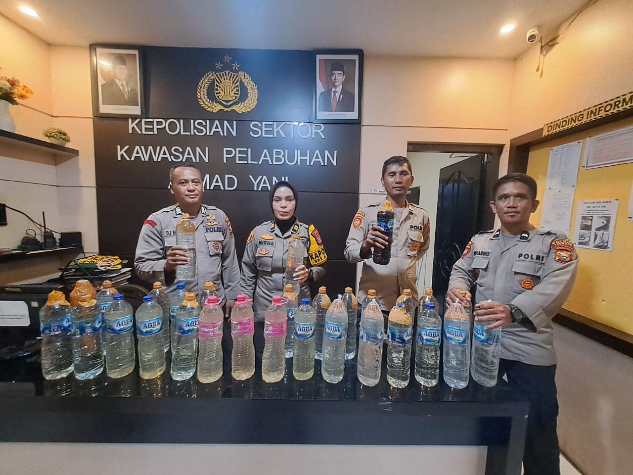 Ternate – Personil Polsek Kawasan Pelabuhan Ahmad Yani berhasil mengamankan pengamanan puluhan botol minuman beralkohol dari atas Kapal KM. Permata Obi yang tiba di Pelabuhan Ahmad Yani, Kelurahan Kota Baru, Kecamatan Ternate Tengah, pada Senin (20/10/25).