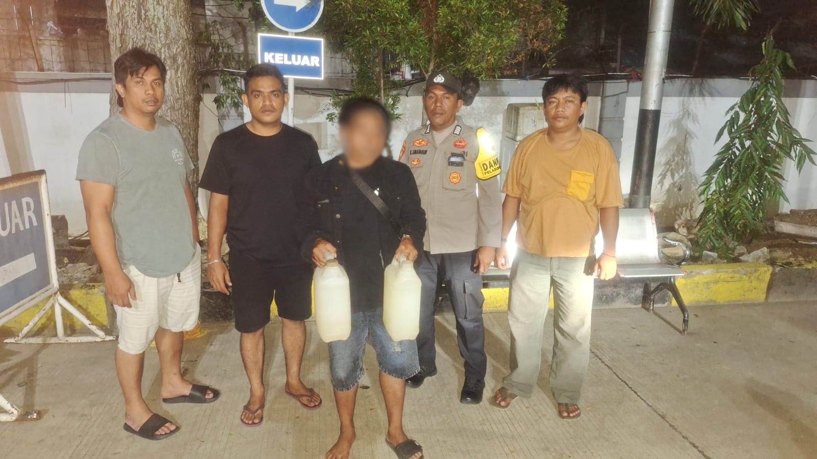 Hasil pemeriksaan menemukan 2 cergen berukuran 5 liter berisi minuman keras jenis saguer yang disimpan di dalam mobil Mitsubishi L300 milik seorang penumpang.